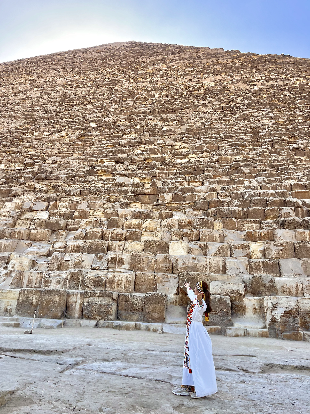 발걸음을 옮길 때마다 점점 더 대피라미드에 가까워졌다. 마침내 눈앞에서 마주하게 된 압도적인 광경.