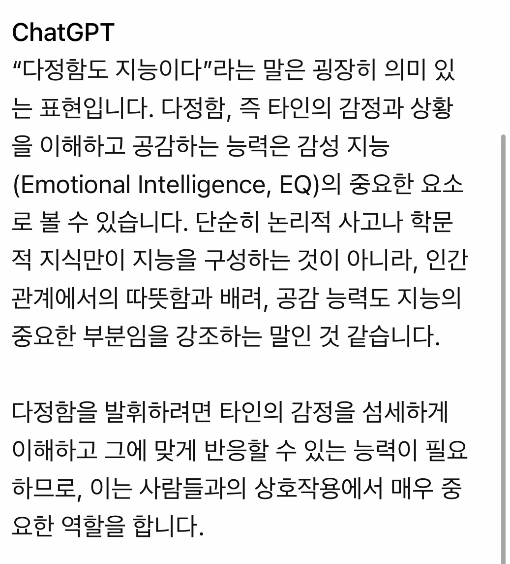 지피티의 말에 왜 이렇게 코끝이 찡해지는건지 모르겠다.