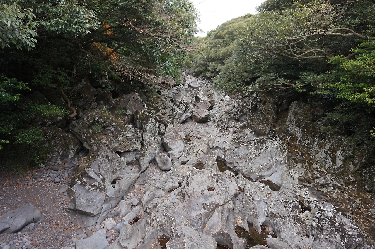 이게 바로 머체왓이다. 용암이 흘러내린 흔적이라고 한다. 화산의 위력을 느낄 수 있어서 무시무시했다. 날씨도 흐려서 회색빛의 무정형 모습은 많은 상상력을 자극했다. 우리는 숲길부터 보고 머체왓 전망대를 찾았다. 머체왓 전망대는 이 전경을 찍은 다리 위였다. 알고 나니 전망대를 수긍할 수 있었지만 전망대를 찾고 찾아서 전망대가 없다고 투덜거렸다. 우리는 전망대라는 기호에 지붕이 있고, 적어도 나무데크가 깔린 이미지를 부여한다. 머체왓 전망대는 이런 우리의 고정관념을 비웃었다. 전경이 다 보이는 그곳이 바로 전망대라고 환기시켜주었다. 우리는 이미 존재하는 기호에 의문을 제기하지 않고 받아들이도록 훈련되어 왔다. 그래서 기존의 기호에 조금이라도 어긋나는 점을 발견하면 당황하고 낯설어한다.