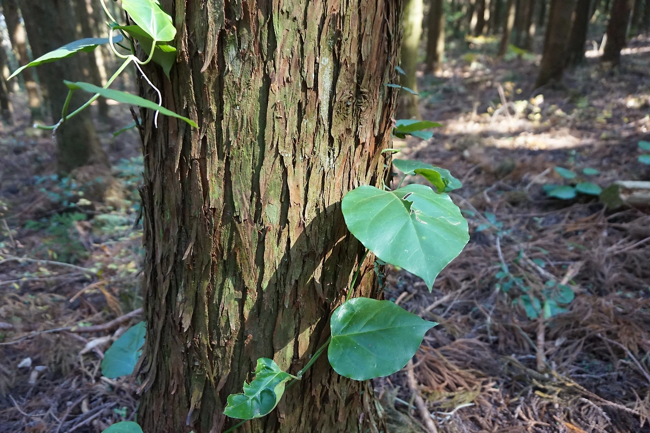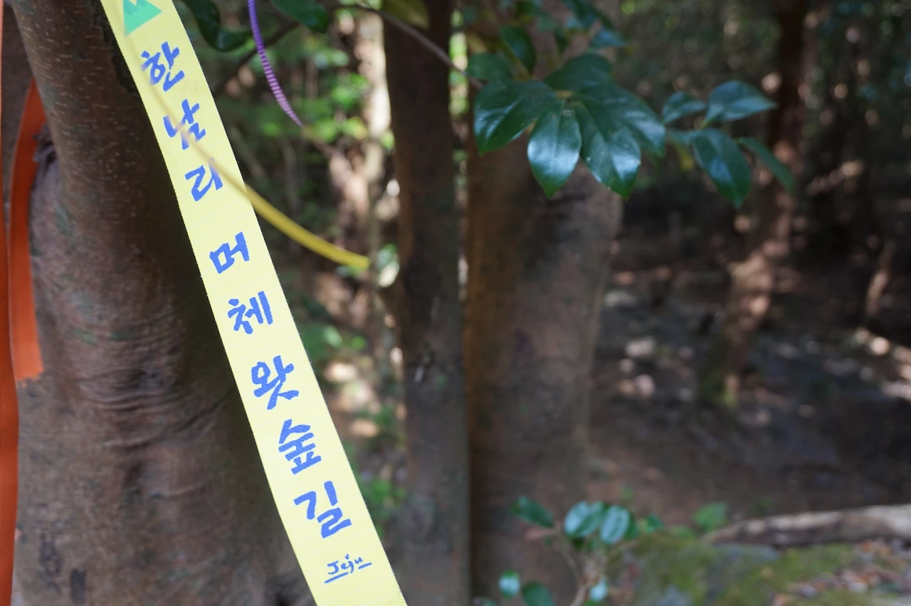 '머체왓'숲길이라니 도대체 무슨 말인가. 머체는 돌이 엉기성기 쌓이고 잡목이 우거진 곳, 왓은 밭이라는 제주도 말이다. 즉 돌밭 숲길이라는 뜻이다. 돌밭 옆에 울창한 편백나무, 삼나무 숲이 있다.
