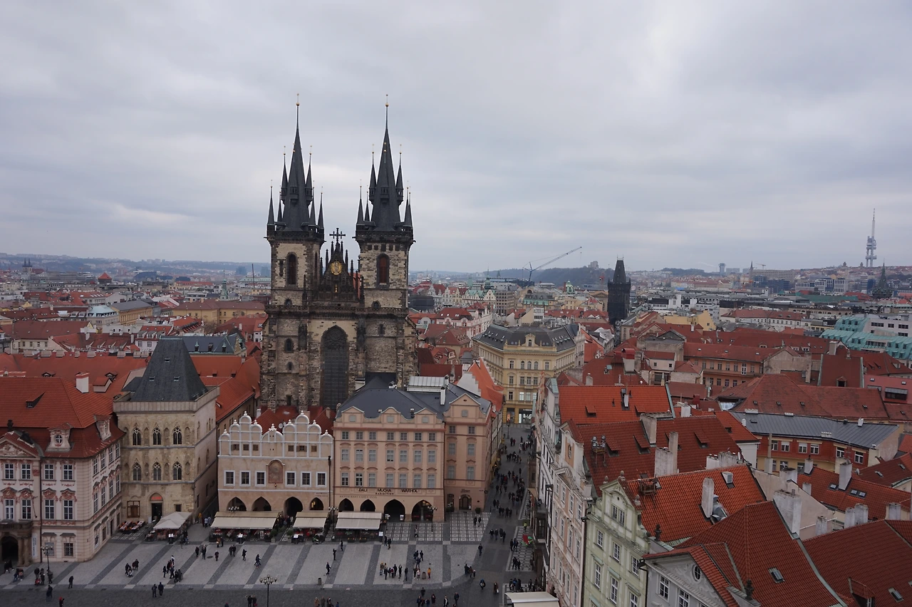 저녁 8시쯤 프라하 중앙역에 도착했다. 거리는 짙은 어둠의 베일을 써서 아무것도 볼 수 없었다. 지하철에서 내려서 숙소까지 가는데 캐리어 바퀴가 포석에 닿아 요란하게 울렸다. 프라하 거리에 씌워진 우아한 베일을 내가 훼손하고 있는 것만 같았다. 다음 날 오전 10시쯤 숙소에서 걸어서 10분 거리에 있는 화약탑 광장으로 갔다. 구시가가 팝업 그림책처럼 시선을 확 잡아끌었다.