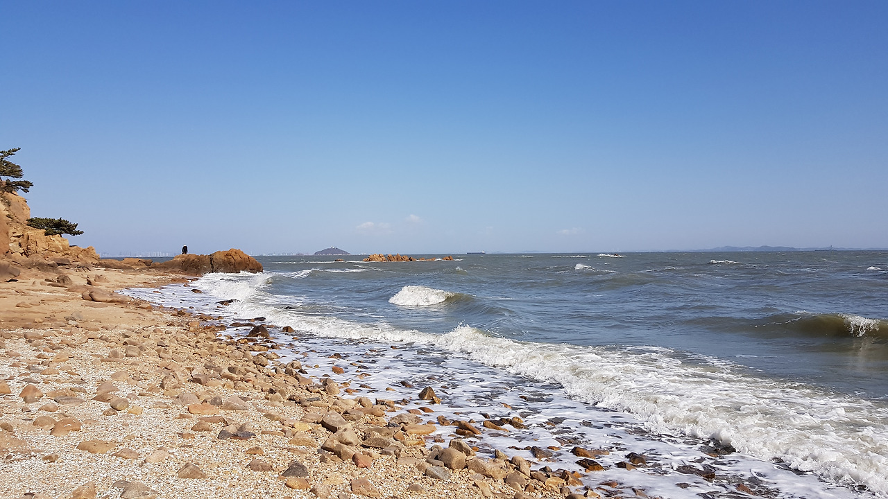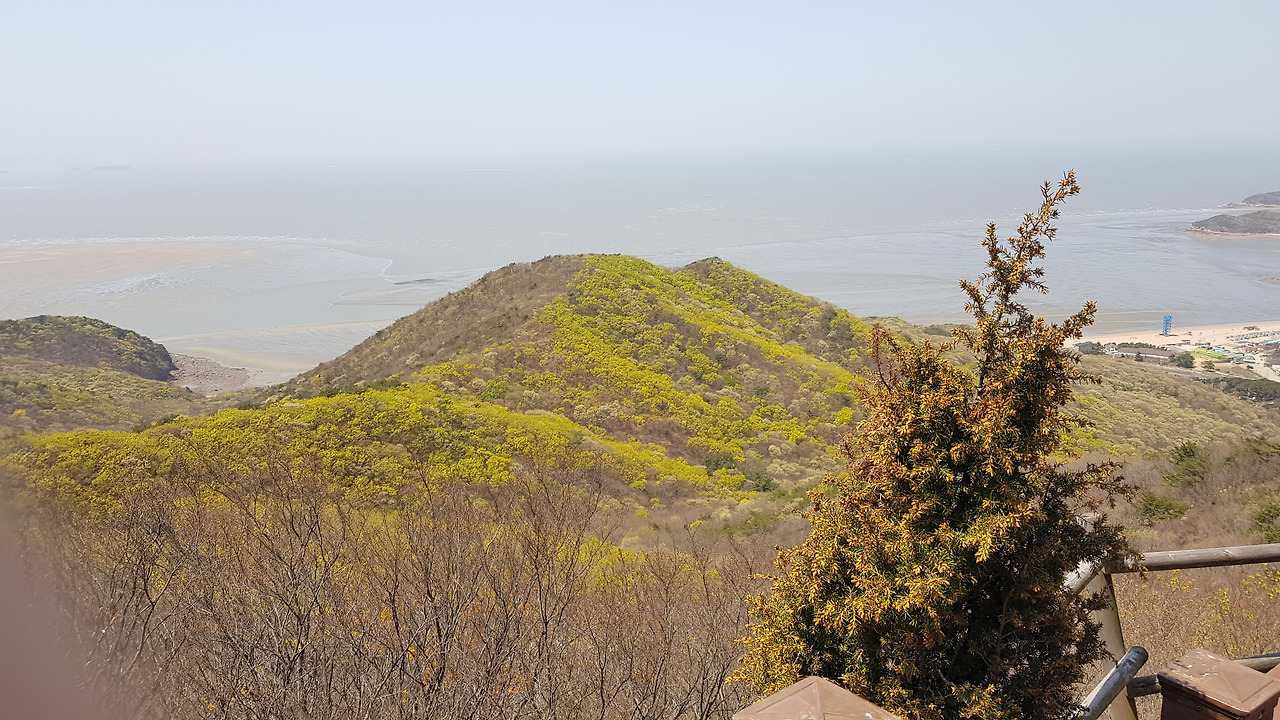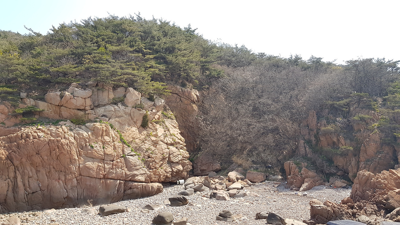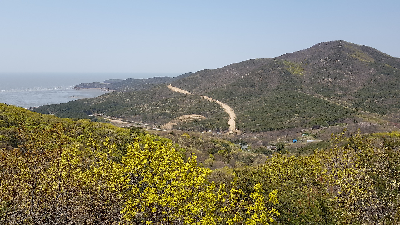포기하고 싶은 순간을 이겨내는 힘의 원동력은 함께 걷는 이들의 지지와 응원이다. 미발달한 운동 신경 소유자는 늘 근력과 체력의 결핍도 감내해야 하는 운명이다. 결코 즐겁지 않은 경험이지만 함께라서 한계를 벗어나려고 애를 써 보기도 한다. 내 신체의 결핍 요소를 드러내는 시간은 다행히 길지 않게 정상에 다다랐다. 섬 트레킹은 항상 매력적인데 높이 올라가면 바다가 펼쳐져 있기 때문이다. 바위와 나무로 덮인 산을 벗어나면 아주 이질적 요소들이 어울려 산과 바다의 변주곡이 펼쳐진다.