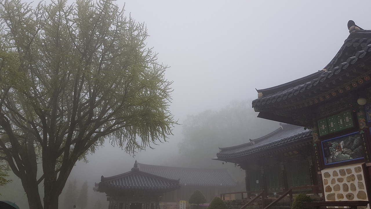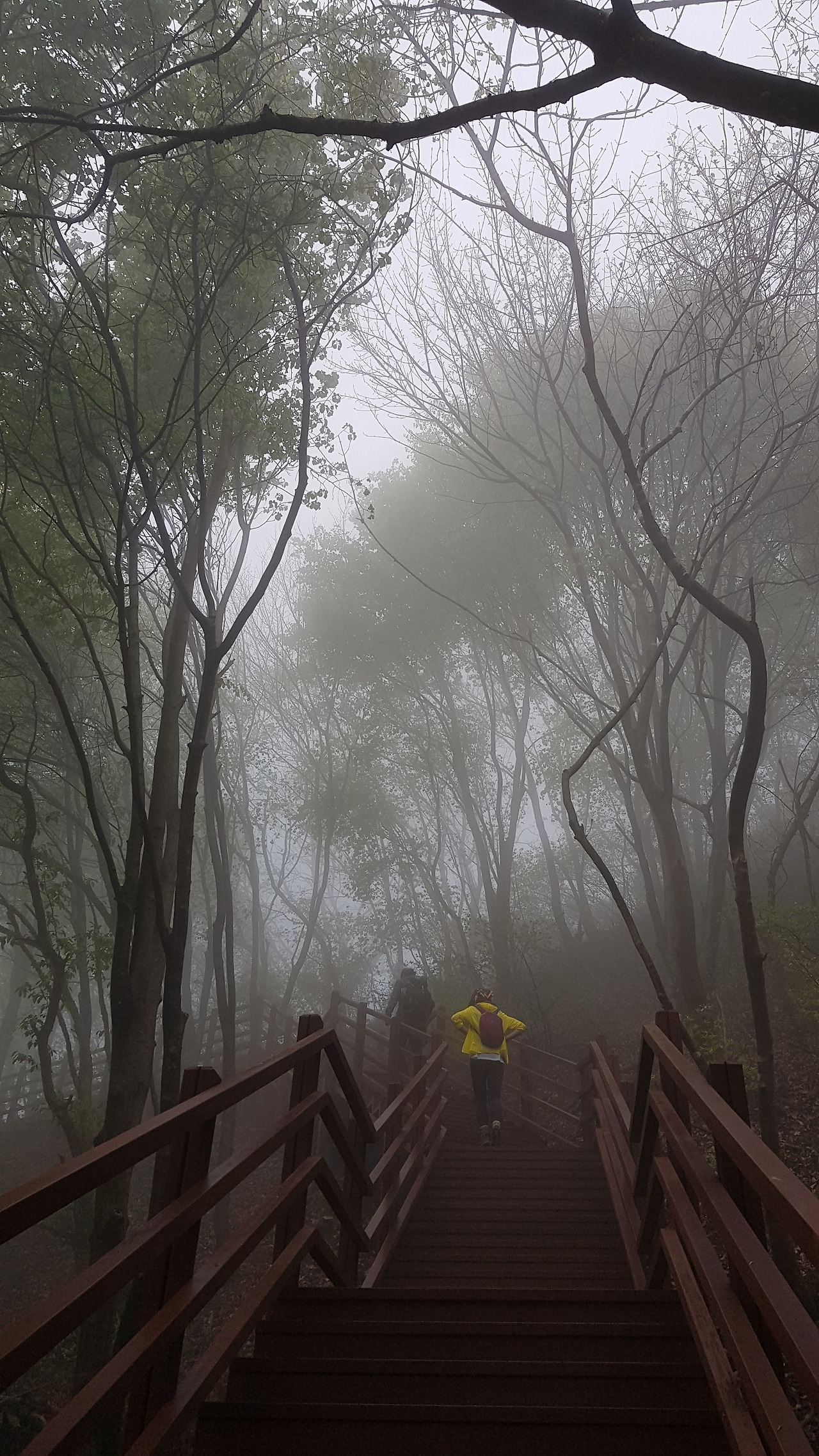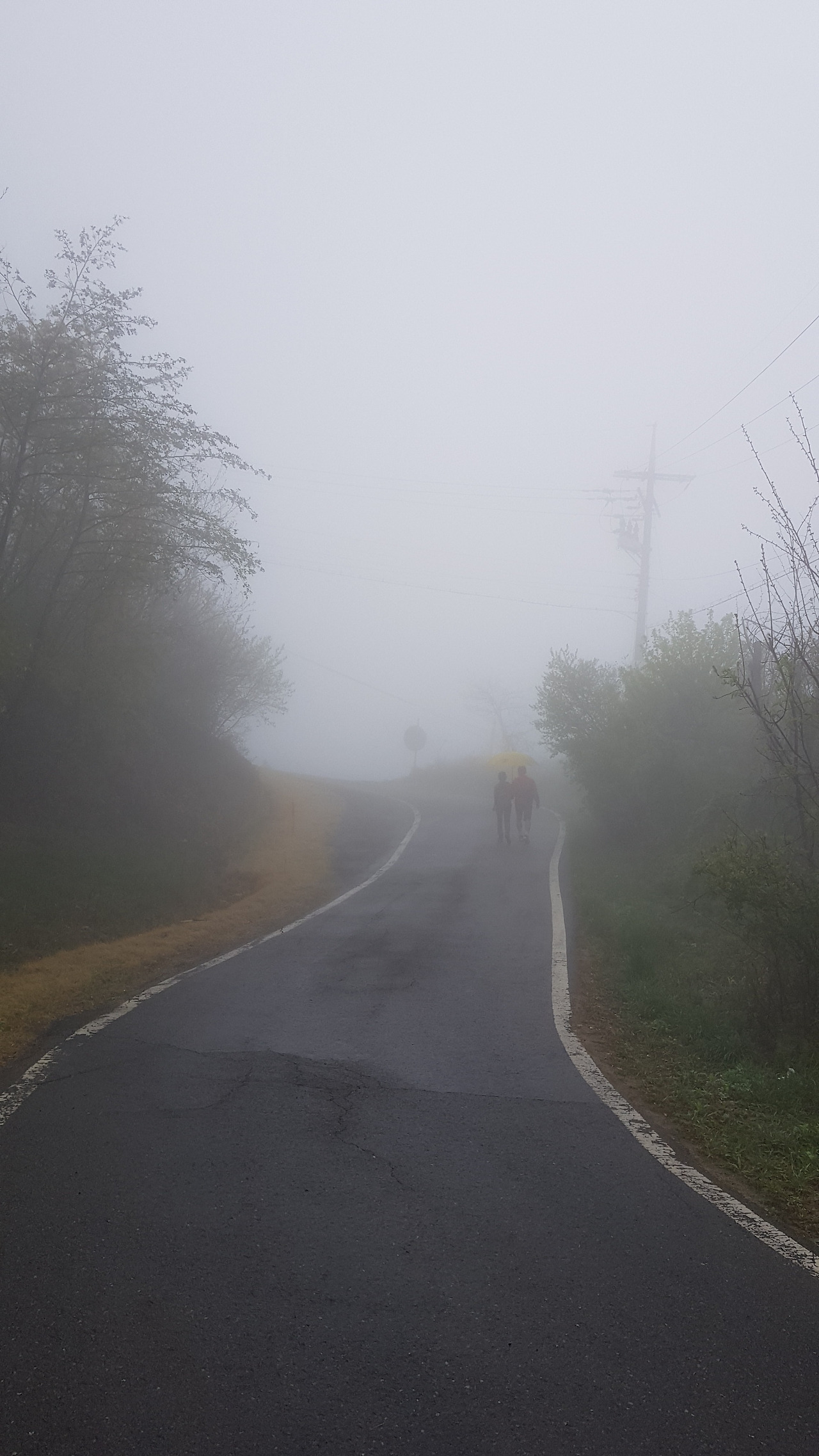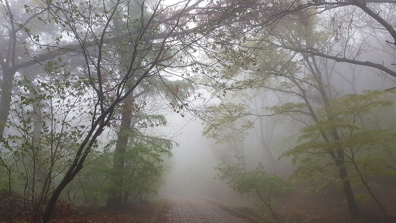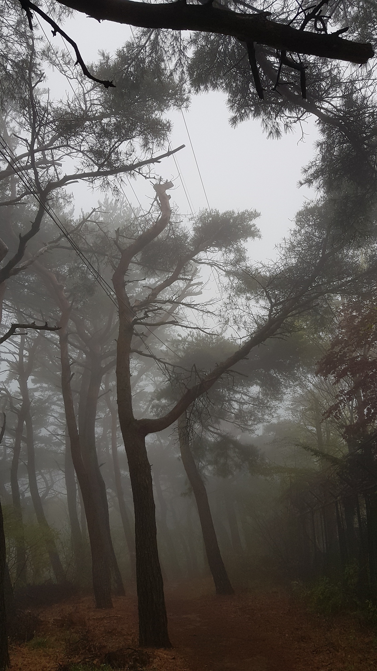 아무튼 백련사 주차장에 도착. 고려산에는 백련사와 청련사라는 두 개의 절이 있다. 우리의 트레킹 코스는 백련사림을 통과해서 고려산 정상을 찍고 청련사로 내려와서 다시 백련사로 원점회귀를 하는 약 9킬로미터의 코스였다. 백련사에 도착해서 차에서 내리자마자 짙은 안개가 산 전체를 감싸고 있었다. 몽환적이었다. 안개 속에서 심장이 둥둥 울렸다.