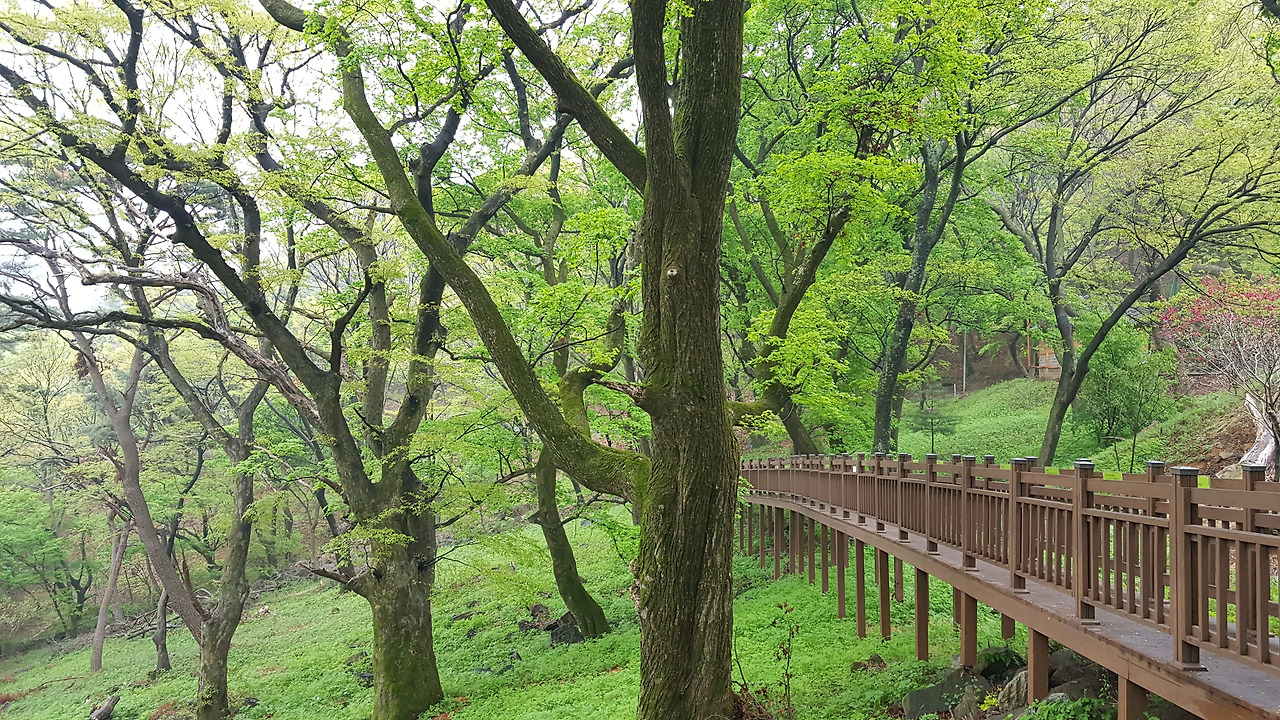 백련사림을 따라 걸으니 한 치 앞도 안 보이는 길이 펼쳐져 있었다. 여행 초보자들은 사람들에게 회자되는 곳이 아니면 볼 것이 없다고 단정하는 오류에 종종 빠진다. 나는 세상에 볼 것 없는 곳은 없다고 생각한다. 어디든 고유의 풍경과 볼거리가 있다고 믿는 편이다. 이런 태도는 고집처럼 보일 수 있는데 '볼거리'는 결국 장소를 방문한 이의 마음에 달려있기 때문이다. 볼 것이 없다고 믿으면 볼 것이 없을 것이고, 볼 것이 있다고 믿으면 볼 것이 있나니. 고려산은 진달래와 철쭉 군락지가 있어서 진달래 축제로 유명한 곳이라는 것을 알게 되었다. 이 말은 진달래 축제철이 아니면 찾는 이들이 드물다는 말도 될 것이다. 축제에 사람이 붐비는 이유는 분명히 있지만 진달래철 아니면 볼 것 없다는 생각을 가진 사람은 고려산의 모습을 진달래 하나로 축소해서 받아들이는 것이다. 일부로 전체를 판단하는 말을 하는 사람을 만나면 입을 다물게 된다. 나는 같은 사람이 되지 말아야지, 하고 결의(?)를 하지만 나도 모르게 하나로 전체를 일반화하는 경박함을 저지르고 있을 것이다.