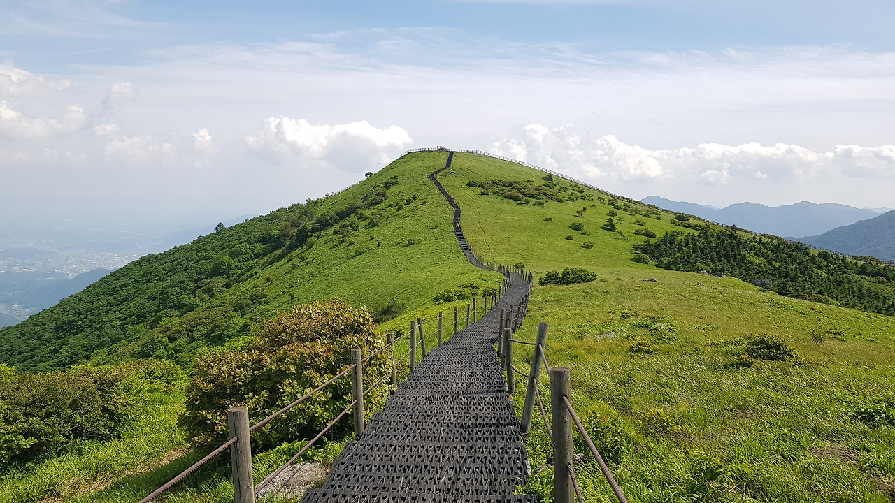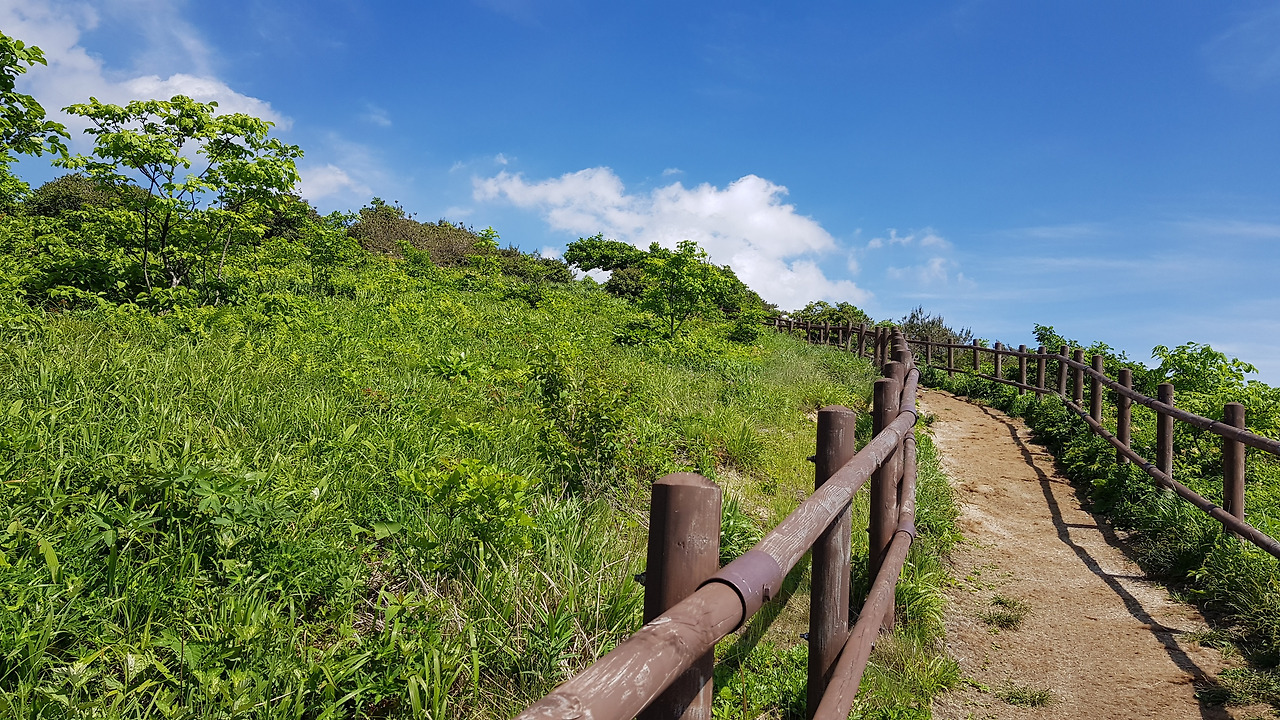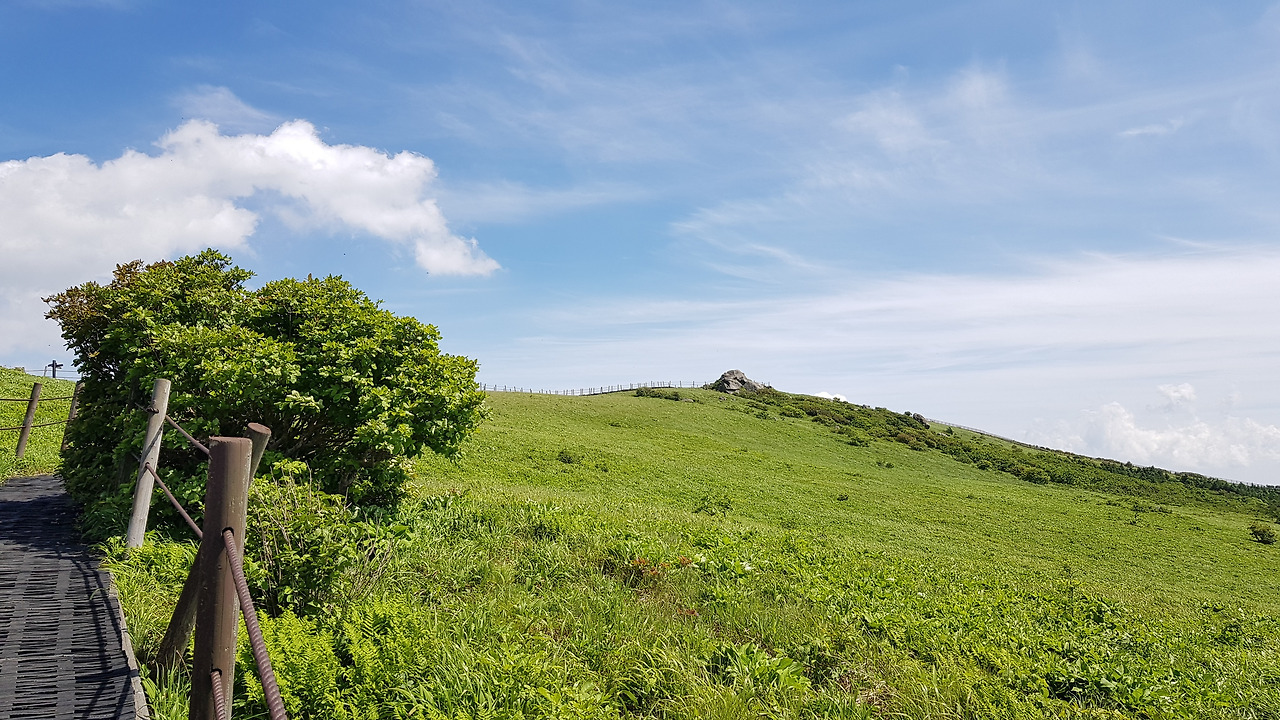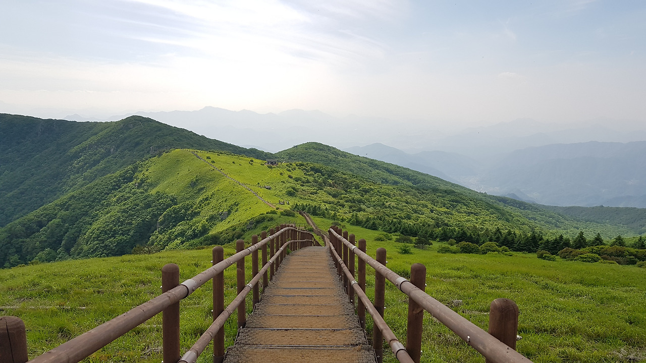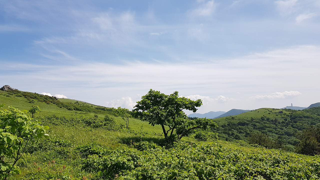구름을 이고 있는 탁 트인 초록 능선을 바라보면 솟구치는 도파민. 이럴 때면 나는 전생에 방목되던 소나 양이 아니었을까 생각하곤 한다. 눈 앞에 있는 아름다움을 놓칠까 봐 조바심이 나서 360도 몸을 돌려 사방을 스캔을 한다. 이리 보고 저리 보아도 어여쁘다. 뭉게구름 아래에 싱그러운 초록들로 혼탁한 시선과 정신이 맑아진다.