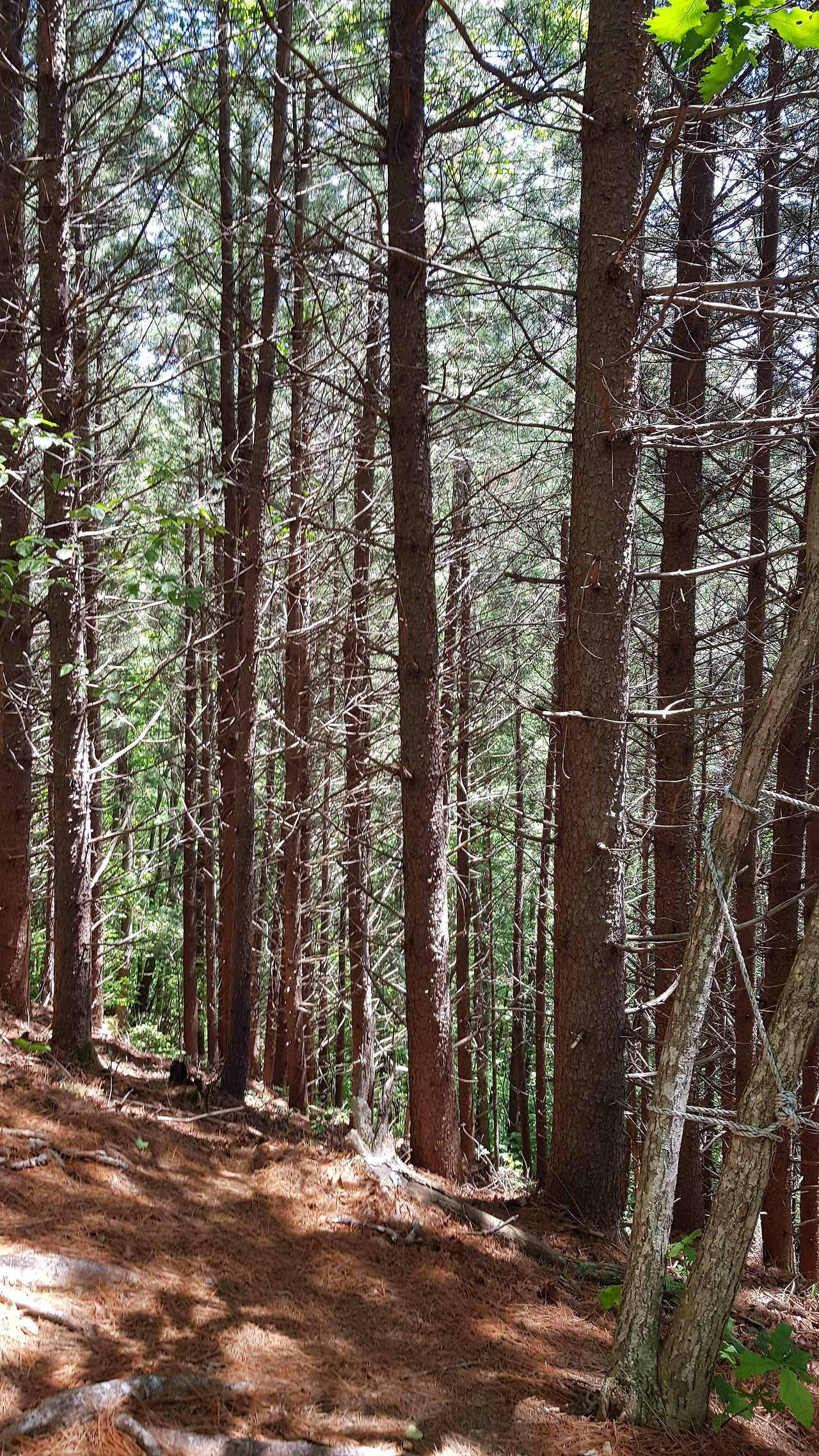 어의곡 주차장에서 비로봉까지는 5.1km인데 이 지점이 3km쯤 왔을 때가 아닌가 싶다. 잣나무인지 소나무인지 모르겠지만 키 큰 나무숲인데, 가지들이 앙상하게 말라있다. 무슨 영문인지 모르겠지만 잎이 없는데도 울창한 모습이다. 고도가 많이 높아져서 바람은 서늘했다. 햇볕은 쨍쨍하고 이따금씩 쉬-익 바람이 소리를 내며 지나갔다. 지상에서 우리가 바람 소리를 들을 때는 태풍 직전이나 날씨가 궂을 때다. 바람은 심술 맞게 자신의 출현을 알려야 우리는 바람을 의식한다. 하지만 숲 속에서 만나는 바람은 순하다. 나뭇잎들이 크게 흔들리지 않을 정도로 순한 바람이 곁을 지나간다.