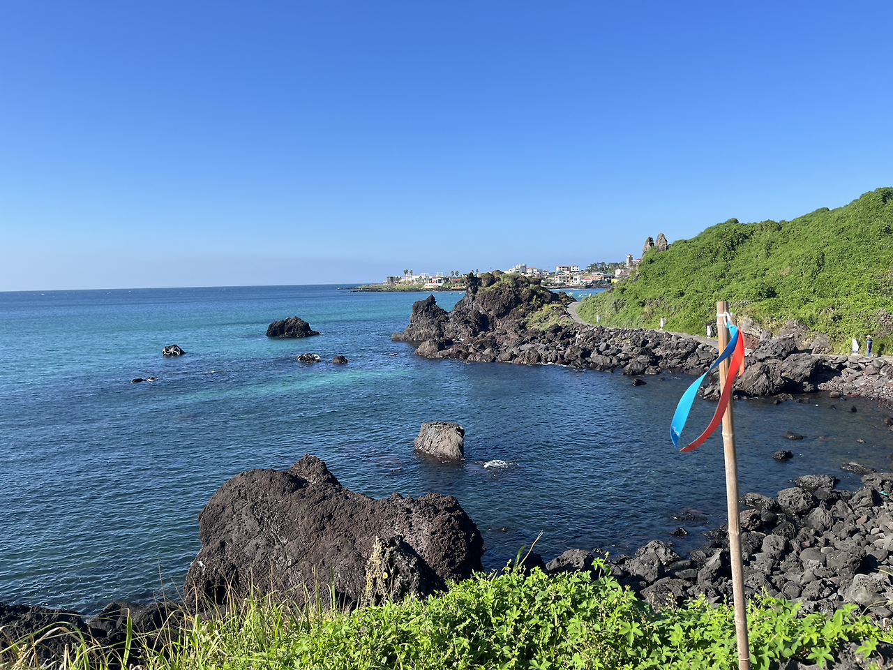 신축 카페들이 즐비한 ‘한담 해안산책로’를 따라 곽지, 애월 해안길을 걷는 5시간 동안 지난 6일 동안 본 사람들을 합친 것보다 훨씬 더 많은 사람들을 보았다. 서당 개 3년이면 풍월을 읊는다던데 나는 고작 3일 제주도 산속 좀 걸었다고 ‘안으로 들어가면 개미 우산도 보고, 지미봉에서 잊지 못할 힘듦도 겪어볼 수 있는데…’ 하며 구석구석 숨겨진 올레를 향한 애정만 깊어졌다. 흘러내리는 땀에 나도 트렌드를 따라 예쁜 카페 하나 들려볼까 했지만 시답잖은 올레 허세를 부리며 해안 뷰 정자에서 땀을 식혔다.
