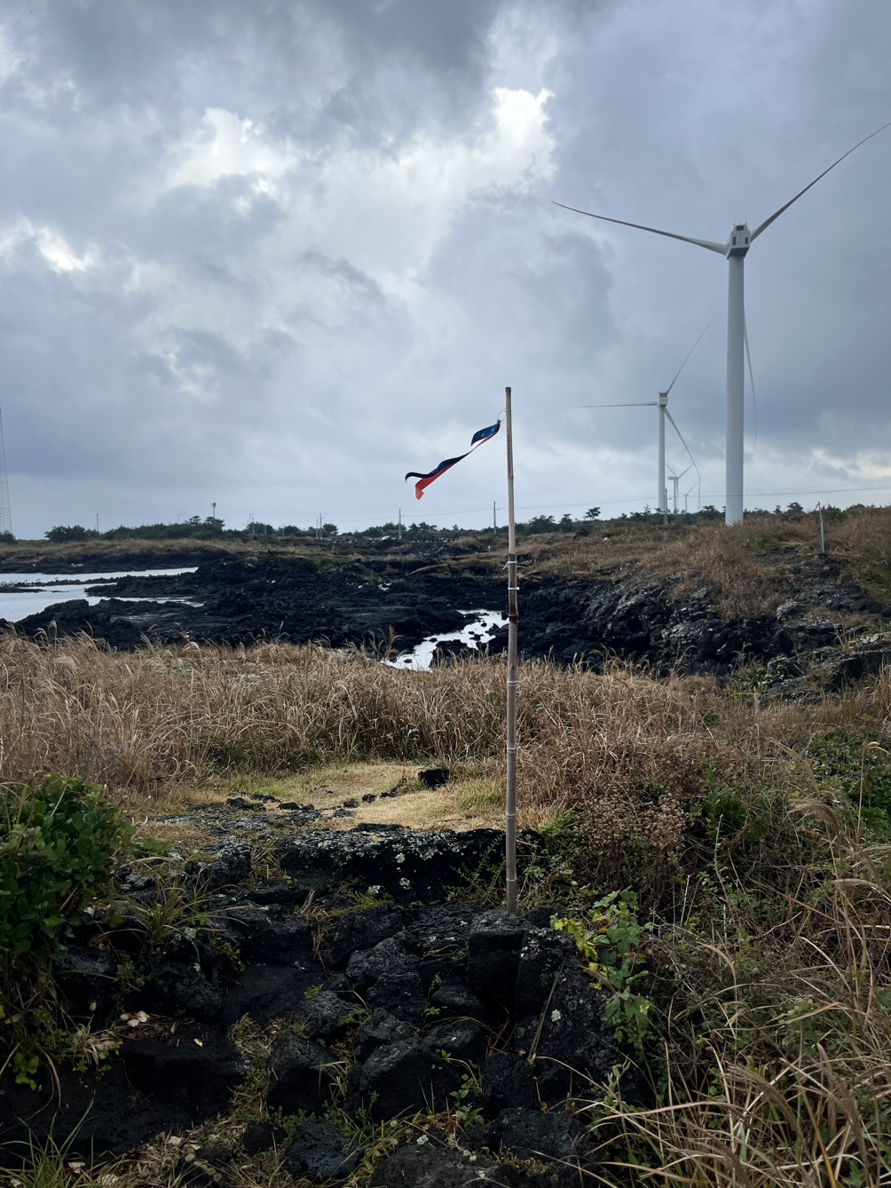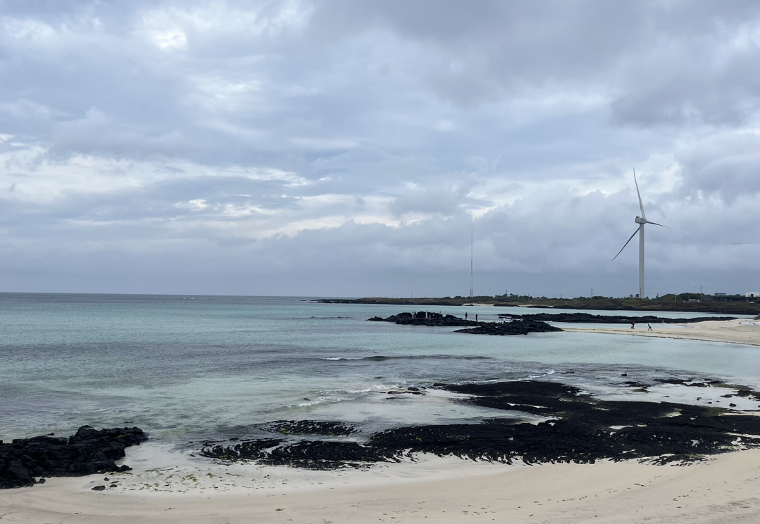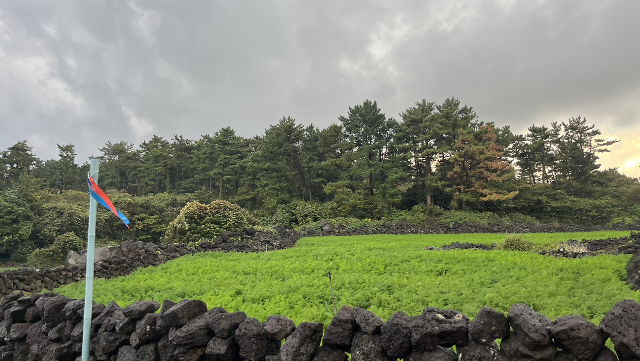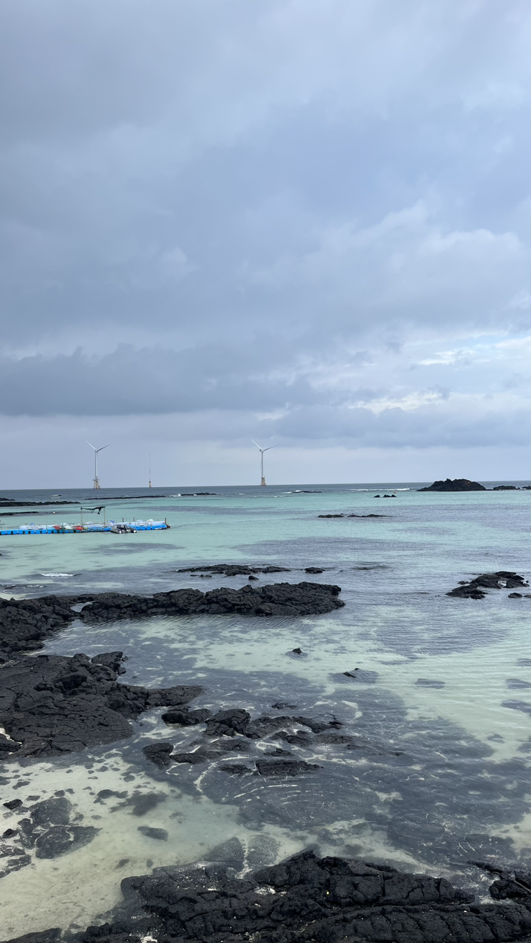 희로애락의 하루는 김녕리에서 시작되었다. 제주 시내를 걷다 와서 그런지 김녕해변은 유달리 아름다웠다. 구름뒤에 가려진 태양이 잠깐이라도 인사해 주기를 기다리며 검푸른 바다를 보고 있자니 여행 4일 만에 진짜로 엽서 속 제주도에 온 것 같았다. 바다와 나만이 있는 동네에서 혼자서 20분 동안 사진 찍고 감탄하고 난리가 났다. (아직 못 가본 올레 동쪽 코스가 벌써부터 기대된다!) 하늘에는 부드러운 뭉게구름 조각이 성난 적란운의 소리에 못 이겨 떠밀려가고 있었다. 분명 몇 시간 안으로 억새비가 내릴 조짐이었다. (어제 구름이 태양을 이긴 것에 감명받고 구름 공부 좀했다. 적란운이란~) 지레 겁을 먹고 오늘은 카페에서 바다멍이나 할까 고민했지만, 그래도 이런 날씨 덕분에 올레꾼은커녕 길가에 사람은 나밖에 없었기에 오늘 하루는 비와 나의 데이트라 생각하기로 했다. ‘오늘 아니면 언제 또 내가 비 오는 날 일부러 걷겠어~’ 긍정 마인드 장착 완료.
