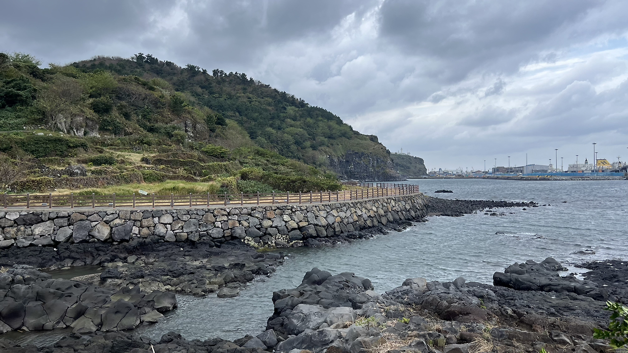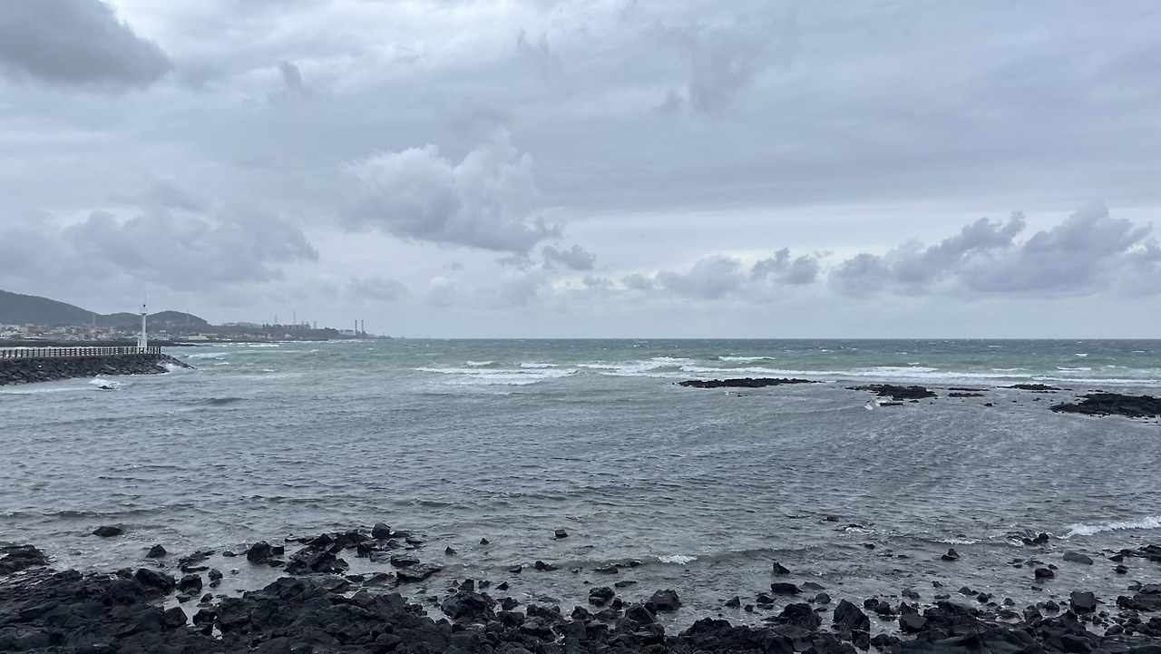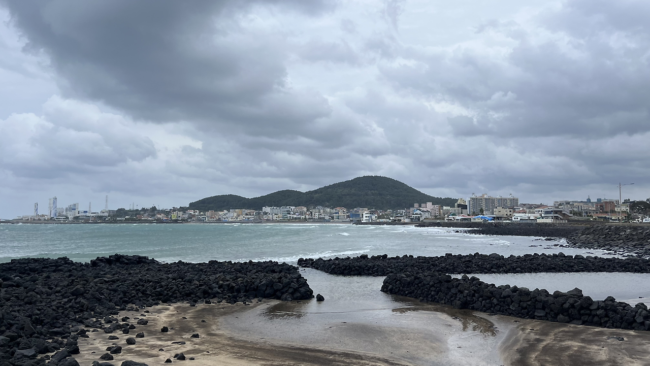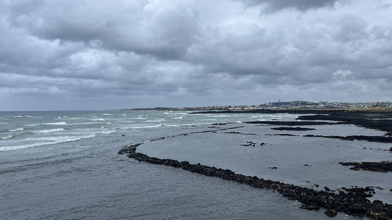 신촌마을은 제사가 있는 날이면 사람들이 제사 밥을 먹기 위해 조천에서부터 1시간이나 넘게 걸어갔던 마을이라고 하는데 밥을 먹기 위해 1시간 걷기라니 대단하다. 옛날에는 친척들을 보기 위해 다 같이 몇 시간에 걸쳐 걸어갔을 길을 지금은 나 혼자 걷고 있다는 게 특별하게 느껴지면서도 외롭기도 했다. 다행히 얼마 지나지 않아 사람들이 꽤 있는 삼양해변에 도착했다. 검은 모래로 유명한 이 해변에서는 모래들이 빗방울을 맞으며 반짝반짝 빛을 냈다. 이제는 비와 바람에게 정이 느껴졌다.