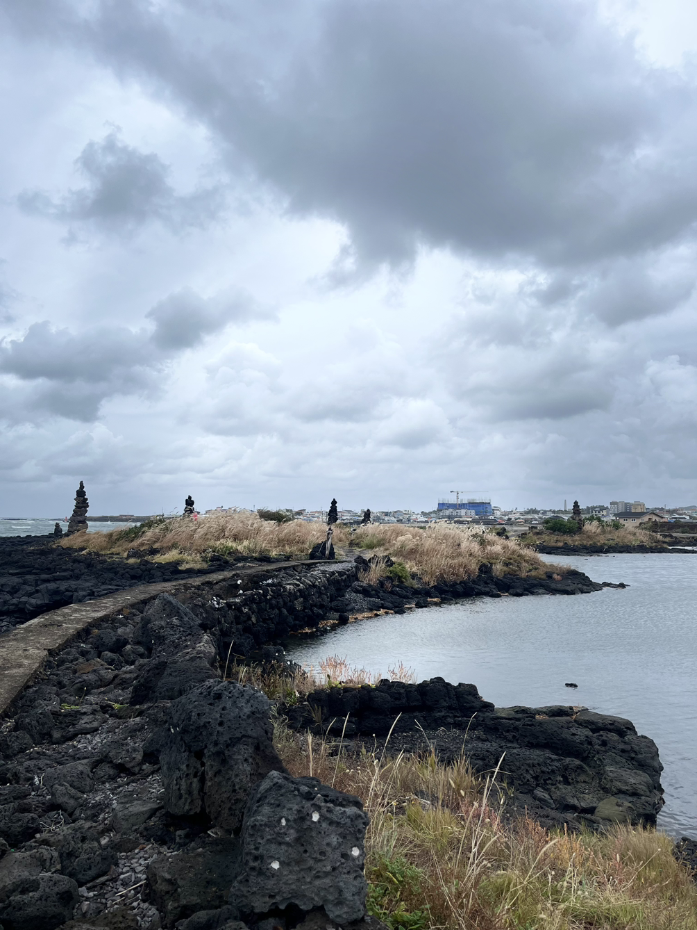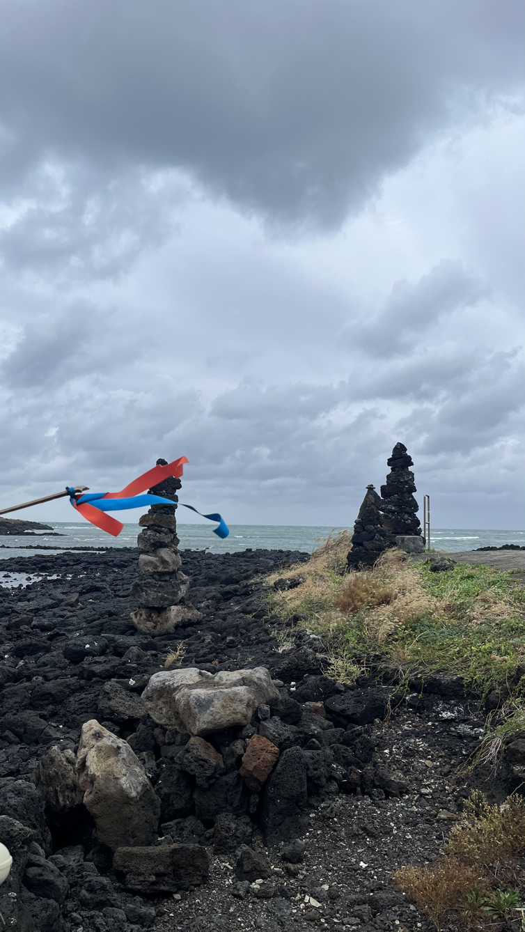 18코스는 제주도의 역사를 볼 수 있는 곳이었다. 아이를 낳게 해달라고 기도한 수덕물이라는 여탕도 보았고, 군사적 용도로 횃불 연기를 냈던 연대도 지나쳤다. 조천마을에서 신촌마을로 넘어가는 ‘대섬’은 용암이 표면을 들어 올려 만들어진 빵모양의 지형인데 파도 따라 물결치는 억새풀 사이로 돌탑들이 무수히 쌓여있었다. 옛날에는 무슨 소원을 빌며 돌을 쌓았을까? 무병장수, 장원급제? 혹시 나처럼 평온한 삶도 소원이라고 빌었을까? 조심스레 제일 몽글한 돌을 주워 마음을 위한 삶을 소원하며 탑을 쌓았다.