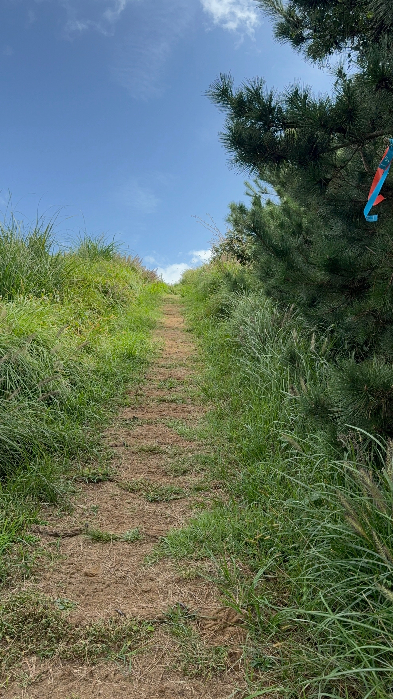 곧바로 두 번째 오름이 이어졌다. 알의 모양을 닮은 알오름으로 가는 길은 하늘로 올라가는 길이었다. 숲 반, 하늘 반인 대자연에서 나무도, 숲도 아닌 하늘을 바라보며 올라갔다. 5초 만에 헉헉거리기 시작했다. ‘아무리 예쁜 하늘이 앞에 있더라도 올라가는 건 뭐든지 힘들구나.‘