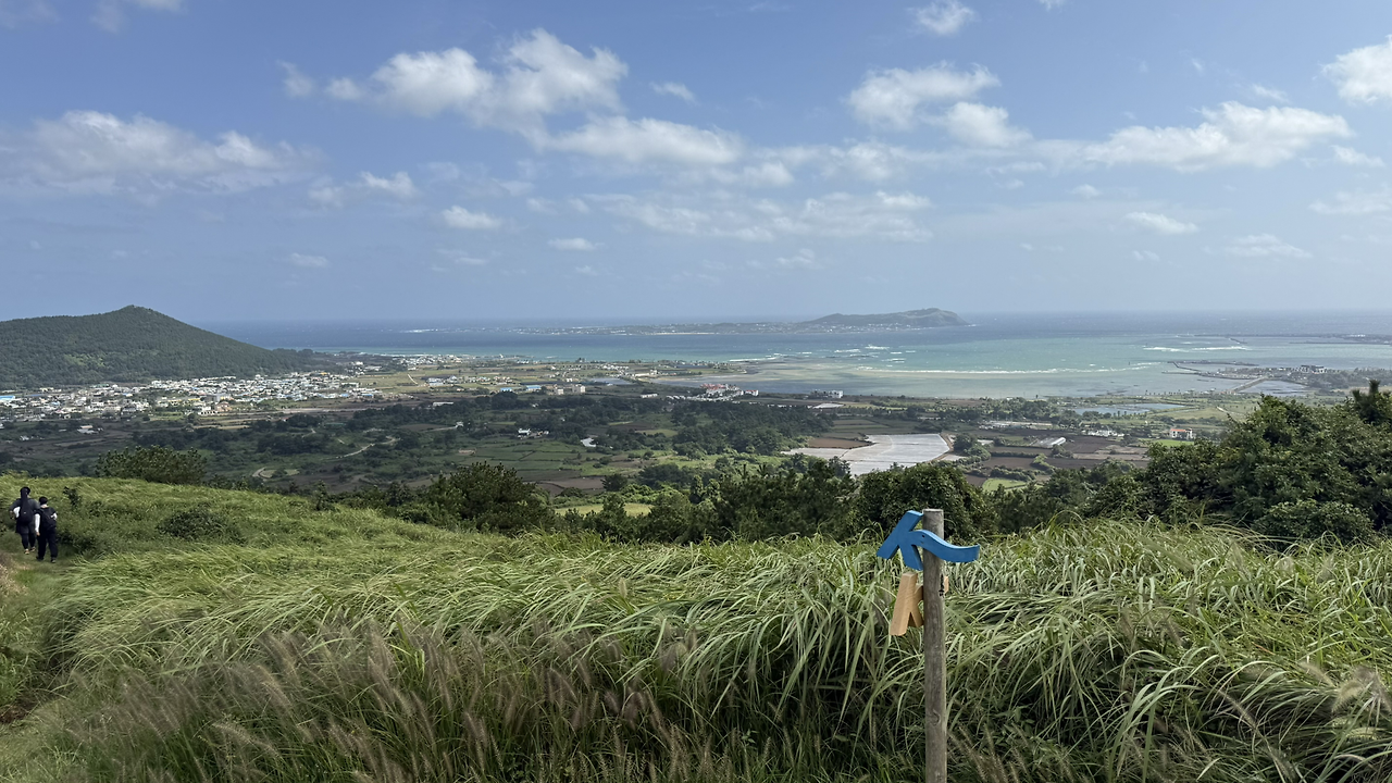 이런저런 생각을 하며 순식간에 올라온 알오름 정상에서 본 경관은 기가 막혔다. 얼마 전 다녀온 보라카이 바닷색보다 훨씬 오묘하게 아름다웠다. 어쩌면 이런 새로움, 앎에 대한 열망이 인간을 인간답게 만드는 걸지 모르겠다는 생각이 들었다. 오름은 눈앞에 보이면 올라가고 싶어지고, 오름이 있는 올레길이 끝나고 보면 훨씬 재미있다. 인생이 오름 없는 평평한 올레길이라면 난 어느새 오름을 찾고 있을 게 뻔했다.