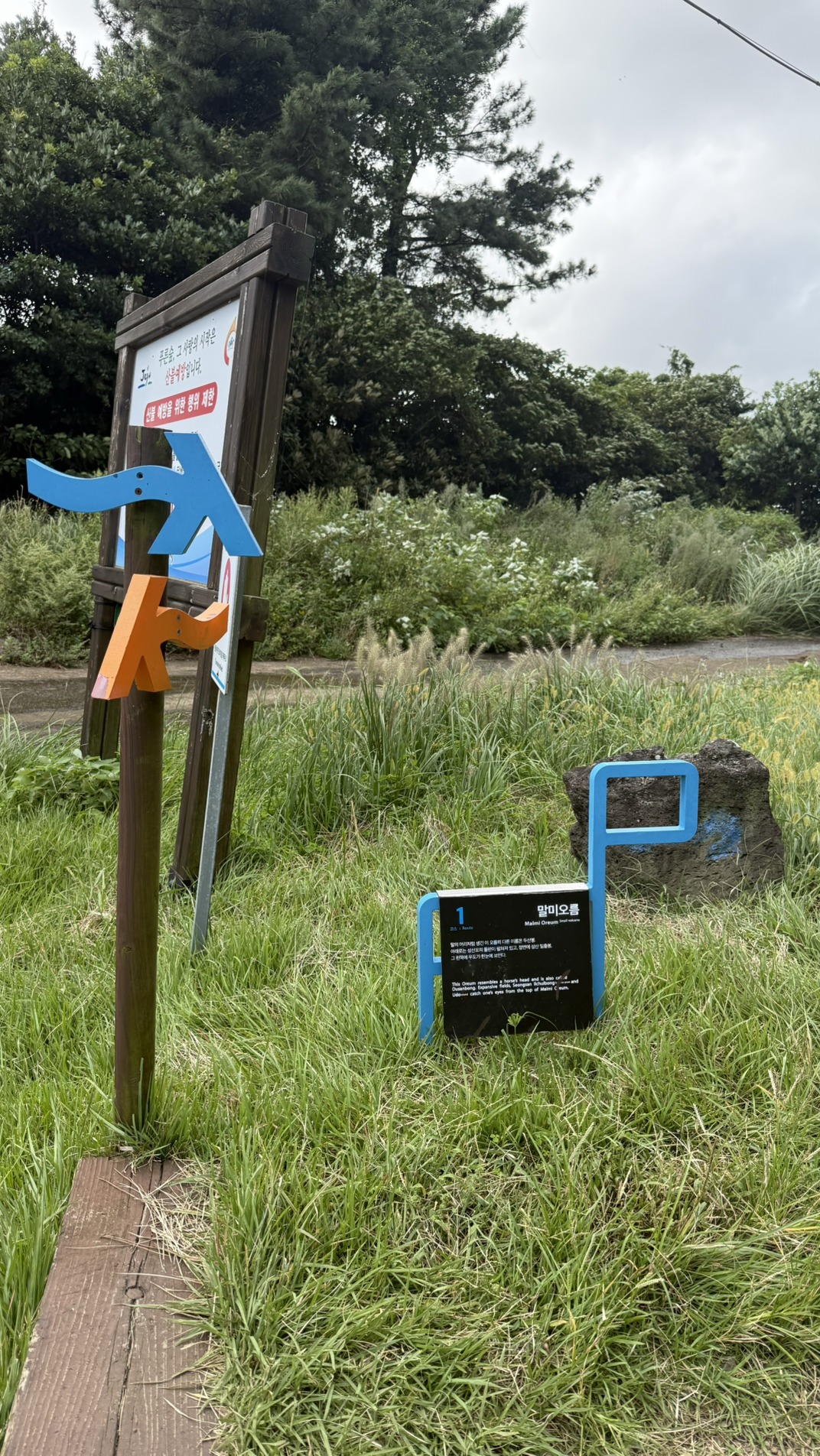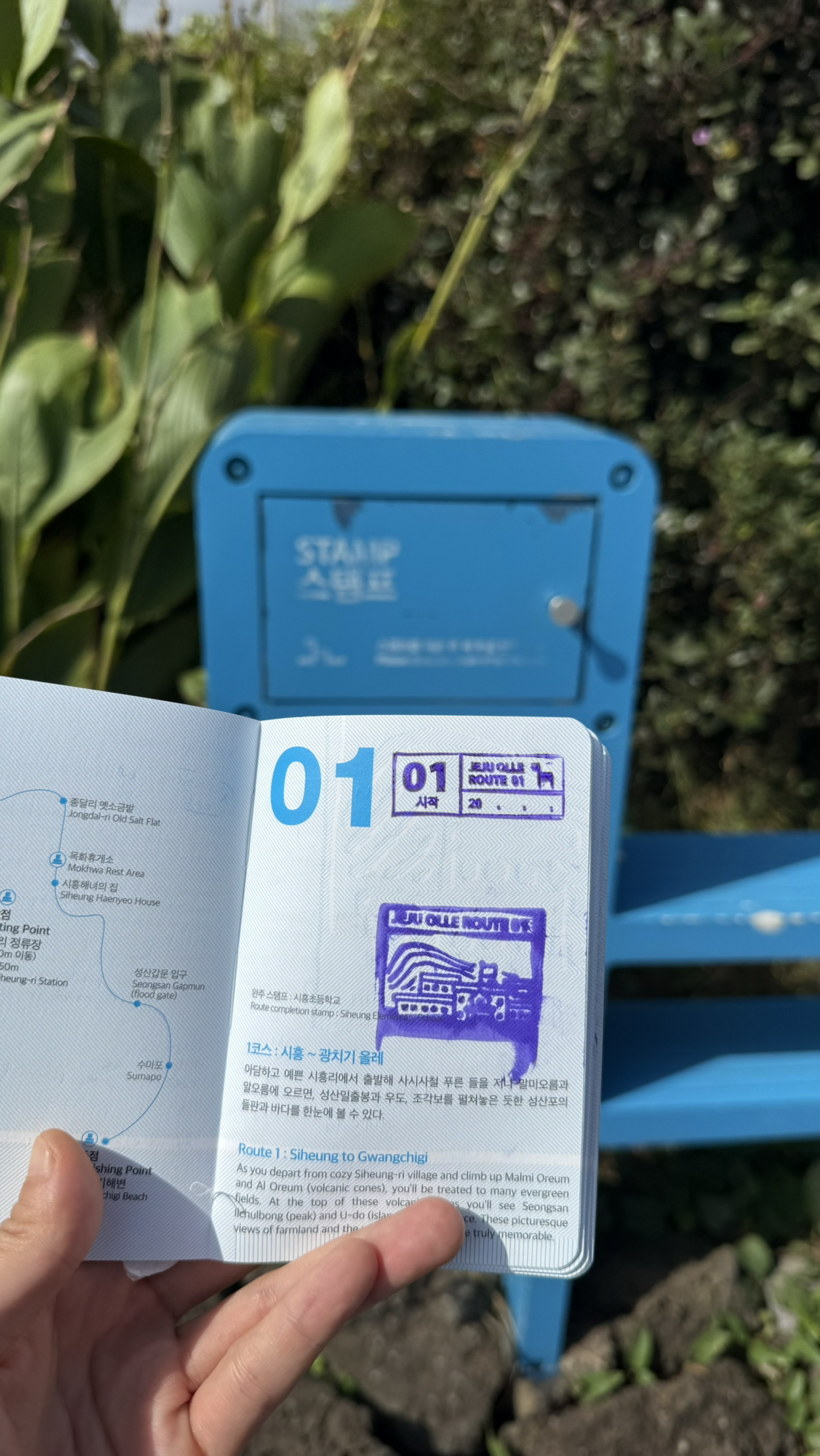 ‘맨 처음 마을‘이라는 시흥리에서 시작한 대망의 올레 1코스. 사람에 치인 나에게 혼자 걷는 한적한 올레길은 생각만으로도 설레었다. 스탬프를 찍고 얼마 지나지 않아 바로 오름이 나왔다. 첫 번째 오름은 말의 머리인지 꼬리처럼 생긴 ‘말미오름’이었다. 약간 가팔랐지만 지칠만하면 나비들이 날아와 힘내라고 응원해 준 덕분에 순식간에 정상에 도달했다. 역시 자연이 최고의 친구다.