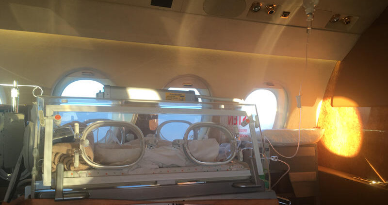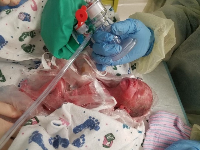 아기는 기도가 너무 작아 호흡기가 너무 불안정했다. 결국 우리는 아기를 우리 병원보다 더 큰 병원으로, 인공 심장과 인공 폐를 이 작은 아기에게도 연결해 기도 수술 동안 목숨을 연명할 수 있는 우리 주에서 하나밖에 없는 큰 병원으로 전원을 신청했다.