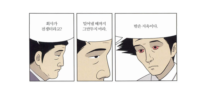 빠르면 30대 후반, 늦어도 40대 후반이 되면, 직장 내에선 저 위로 올라가지 못하는 한 더 이상 설 자리도, 갈 곳도 없이 돌고 돌다 저 바깥으로 밀려나게 된다. 말로는 '명예롭게' 라지만, 현실은 '나가라는 것'이다. 갖은 수모 속에서도 버티고 버티다 회사 밖으로 나오면, 드라마 '미생'의 말처럼, 회사 밖은 지옥이다.
