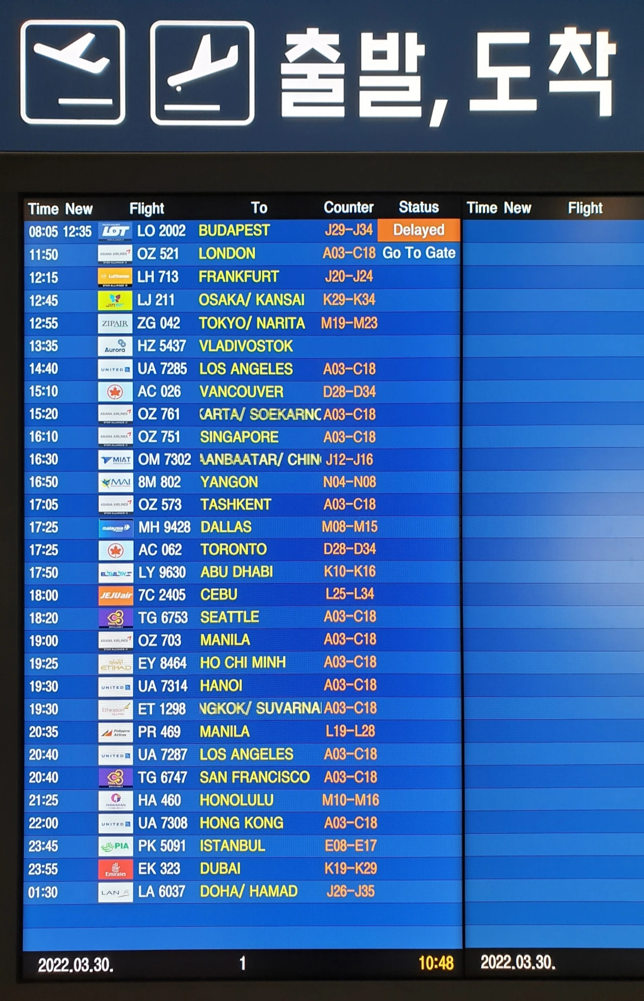 22년 3월 30일, 인천공항 출발 항공편들이 표시판 한 페이지로 끝났던 시간, 프랑크푸르트행 항공기에 몸을 실었을 때 어떤 심정이었는지는 이륙 직후 쓴 글에 남아있다.