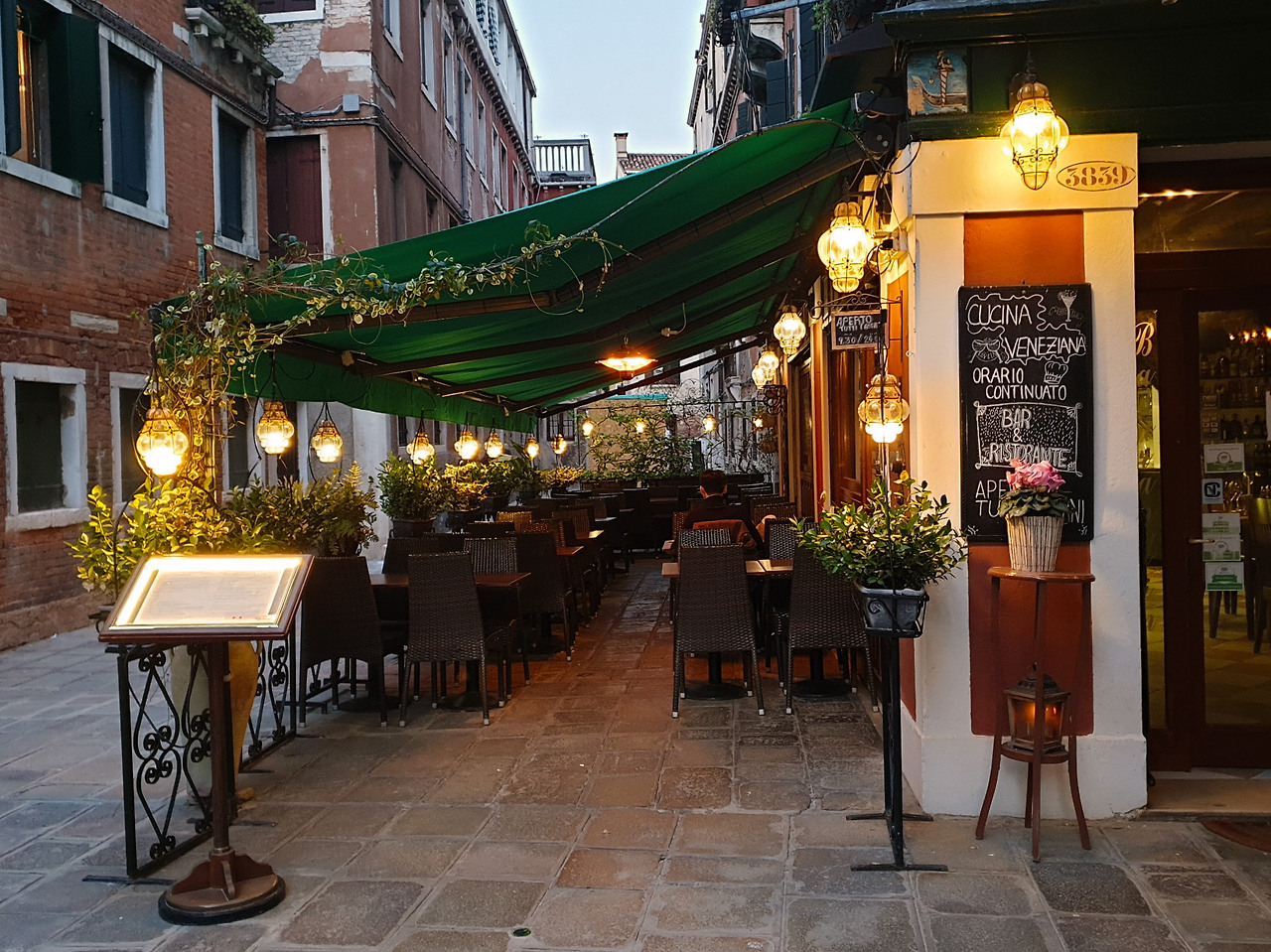탄식의 다리를 건너 한적한 부둣가 길을 걸었다. 곤돌라를 포함해 크고 작은 배가 정박한 모습은 언제나 편안함을 가져다줬다. 10분이 지나 다시 골목으로 들어섰고 목적한 식당에 도착했다.