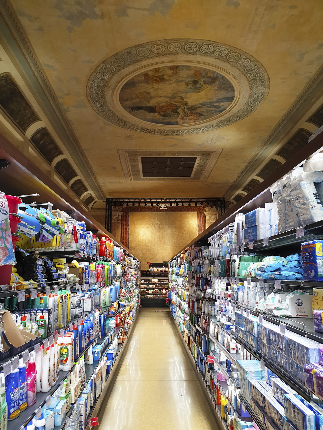 그 말을 듣고 아무런 부담 없이 들어갔다. 안에는 말 그대로 식료품부터 생필품까지 다양하게 있었다. 아래는 다이소인데 천장은 궁전이었다. 이 나라 사람들은 일상의 마트마저 예술적으로 쓰고 있었다.