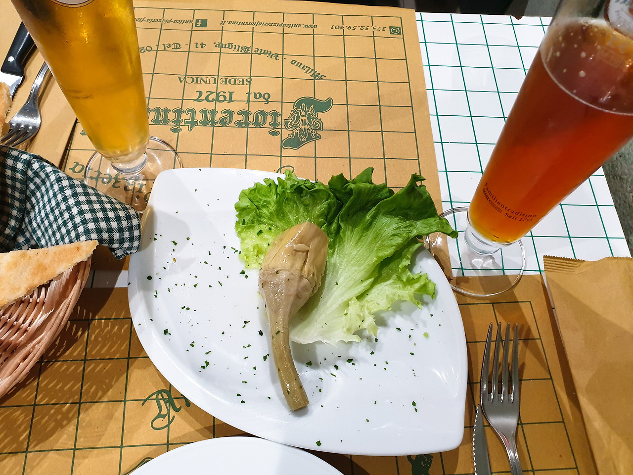 도움을 받아 메뉴판을 보며 몇 개를 골랐다. 맥주를 먼저 시키고 음식이 뒤에 나왔다.