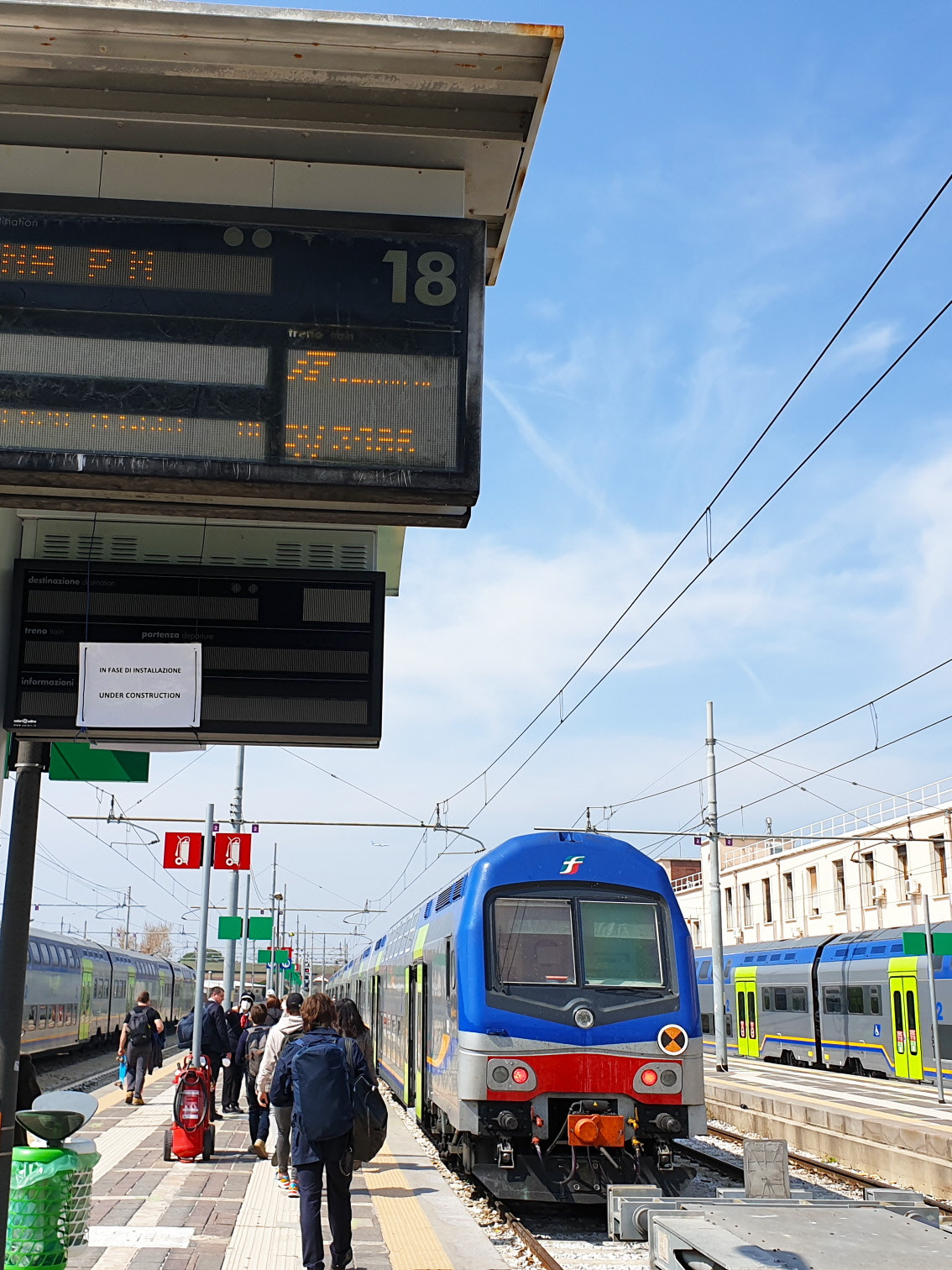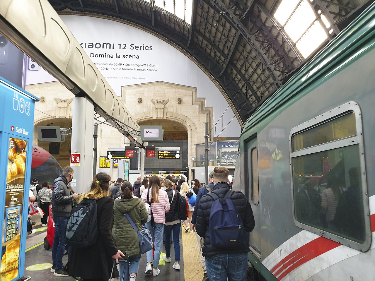 역의 활기와 분주함은 독일 대도시의 중앙역사와 비슷했으나 사람들의 옷차림이 달랐다. 열차들의 색상은 빨강, 파랑, 녹색, 연두까지 색색이 다양했다. 안내방송이 역사 내부에 끊임없이 울리고 있었다. 그중 의미까지 알아들을 수 있는 건 아텐치오네(Attenzione, 주목해 주세요)와 기본 단어 몇 개뿐이었지만 운율이 있어서 귀가 편했다.