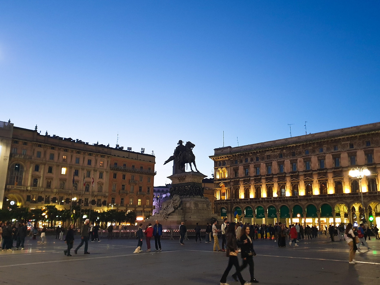 대성당은 같은 톤의 조명을 받아 깔끔하게 빛나고 있었다. 고딕 양식이 섞여 있어서 곳곳이 뾰족하긴 했지만 쾰른 성당과 비교하면 그래도 인간적이었다. 성당 앞 광장엔 에마누엘레 2세 동상이 있었는데 왕이 생각보다 키가 작은 게 인상적이었다. 그리곤 큰 규모의 갤러리아 쇼핑 거리를 걸었다.