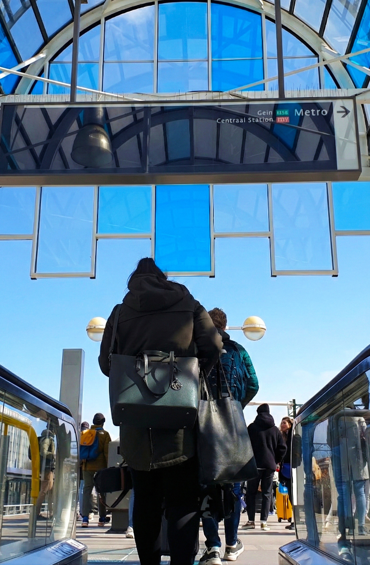 지하철을 타고 암스테르담 중앙역에서 내렸다. 이번에도 어두운 아래의 공간에서 밝은 위의 공간을 향했다. 중앙역에는 Zuid역의 분위기와는 다른, 고전적인 위풍이 있었다. 규칙적인 비례의 미가 있고 직선과 곡선의 조화가 있었다. 일본 도쿄역의 모티브가 되었다고 한다. 사실 건물 외벽 색상 말고는 비슷한 모습은 보이지 않았다.
