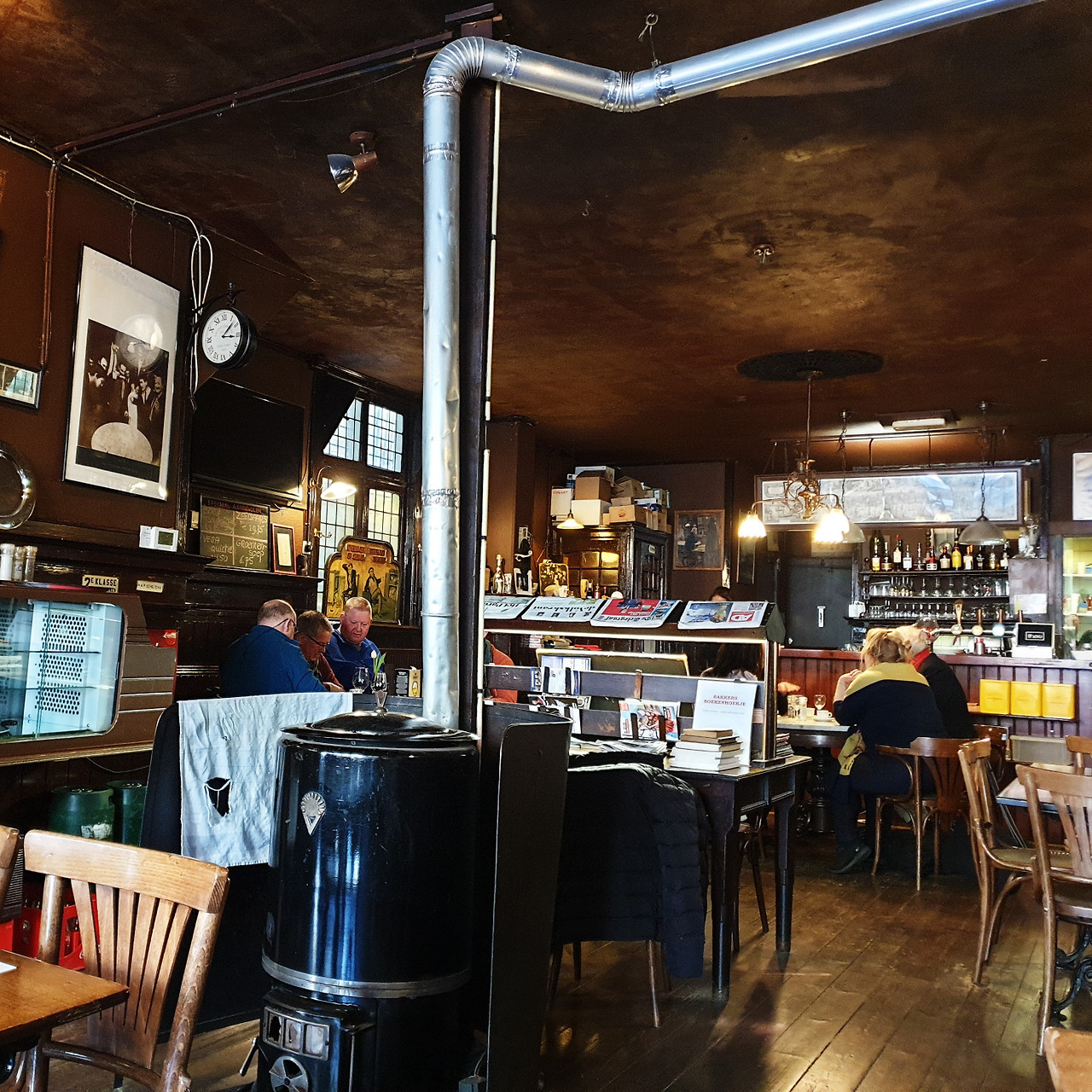 즉석에서 Scheltema라는 이름의 카페를 찾은 건 행운이었다. 왁스 칠 되어 번들거리는 짙은 밤색이 공간을 덮었다. 예전에 빠져 있었던 '대항해시대'의 주점으로 들어온 듯했다. 역시나 100년이 넘은 전통 가게였다. 벽체와 천장, 바닥뿐 아니라 소품 액자까지 모든 것에 한 세기의 시간이 배어 있었다. 커피 향과 갓 구운 팬케이크 냄새가 가게 안 공기를 채웠다.