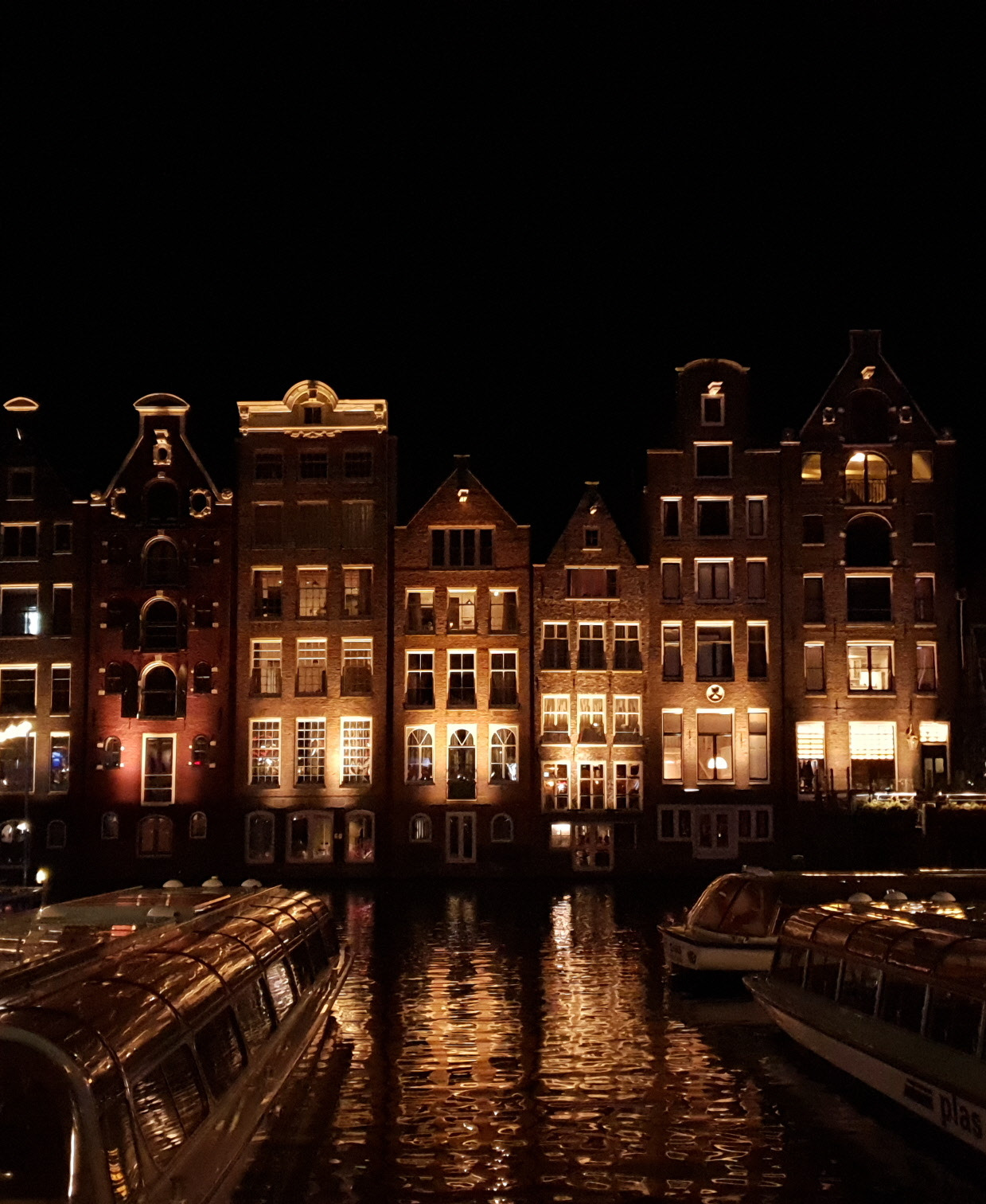한 시간 남짓 홍등가, 네덜란드 현지어로는 De Wallen 거리를 둘러보고 다시 오후에 갔던 중심가로 향했다. 밤에 보는 역과 궁전, 광장은 줄어든 사람들로 휑했다. 저녁까지의 열기에 찬 북적거림과 더욱 대비되어서일까, 운하 수면 위로 비치는 오랜 집들의 조명은 낭만적이기보단 공포 영화의 프리퀄에 가까웠다.