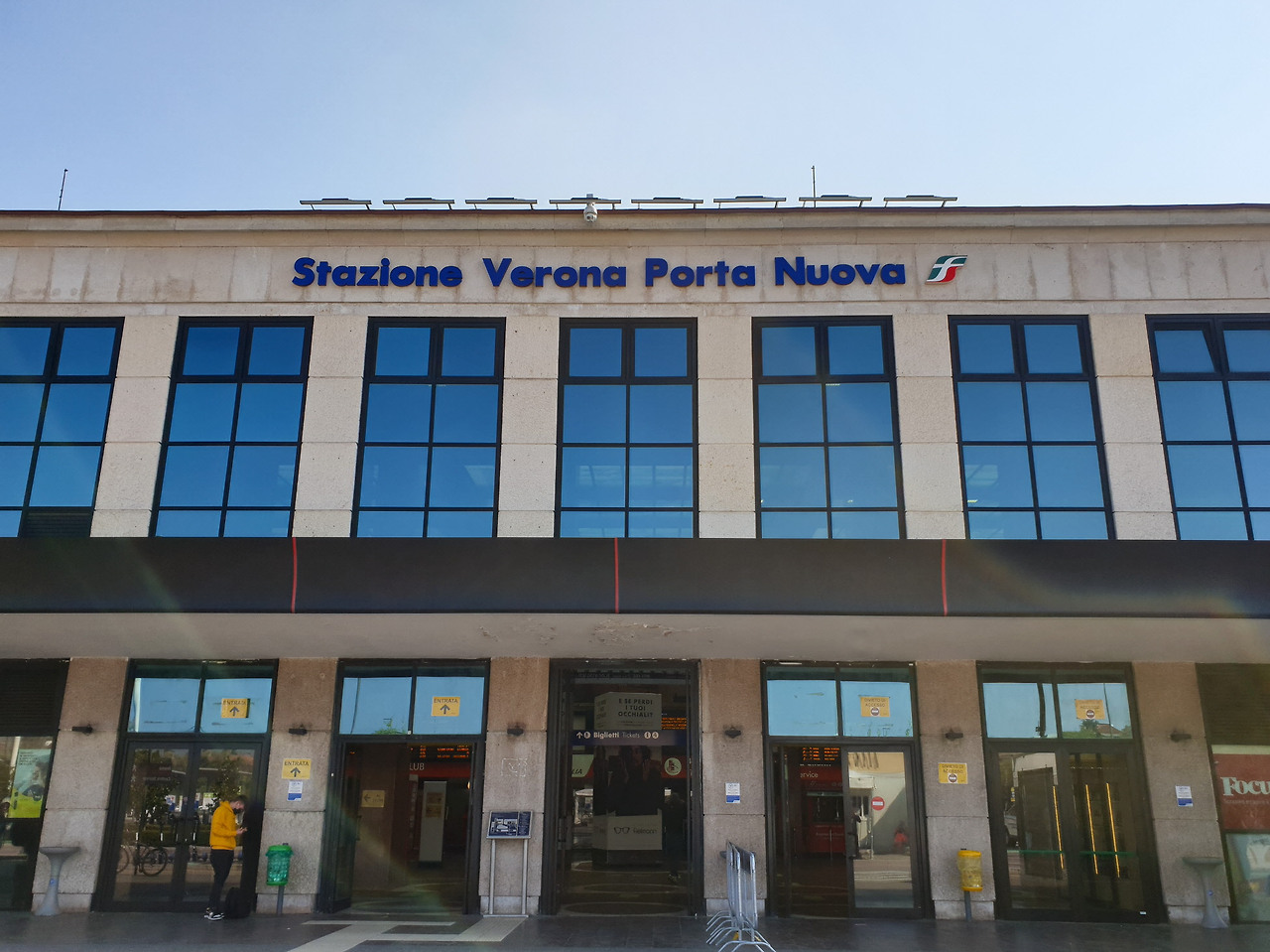 햇살 아래 돌로미티의 기암괴석을 구경하다 보니 어느덧 한 시간이 더 흘렀고, 오후 3시 무렵 베로나에 도착했다. 여기서 EC 국제열차에서 내려 이탈리아 지역 노선인 RE 열차로 갈아타야 했다. 문득 오스트리아 직원의 베로나에서 뭔가 하라는 조언이 떠올랐지만 뒷 내용을 잘 듣지 못했었다. 별 문제가 없을 거라 마음 놓았다. 20분 간의 환승 대기 시간 동안 역 앞 광장을 둘러보고 과일 컵과 베로나 지역 마그넷을 하나 샀다.