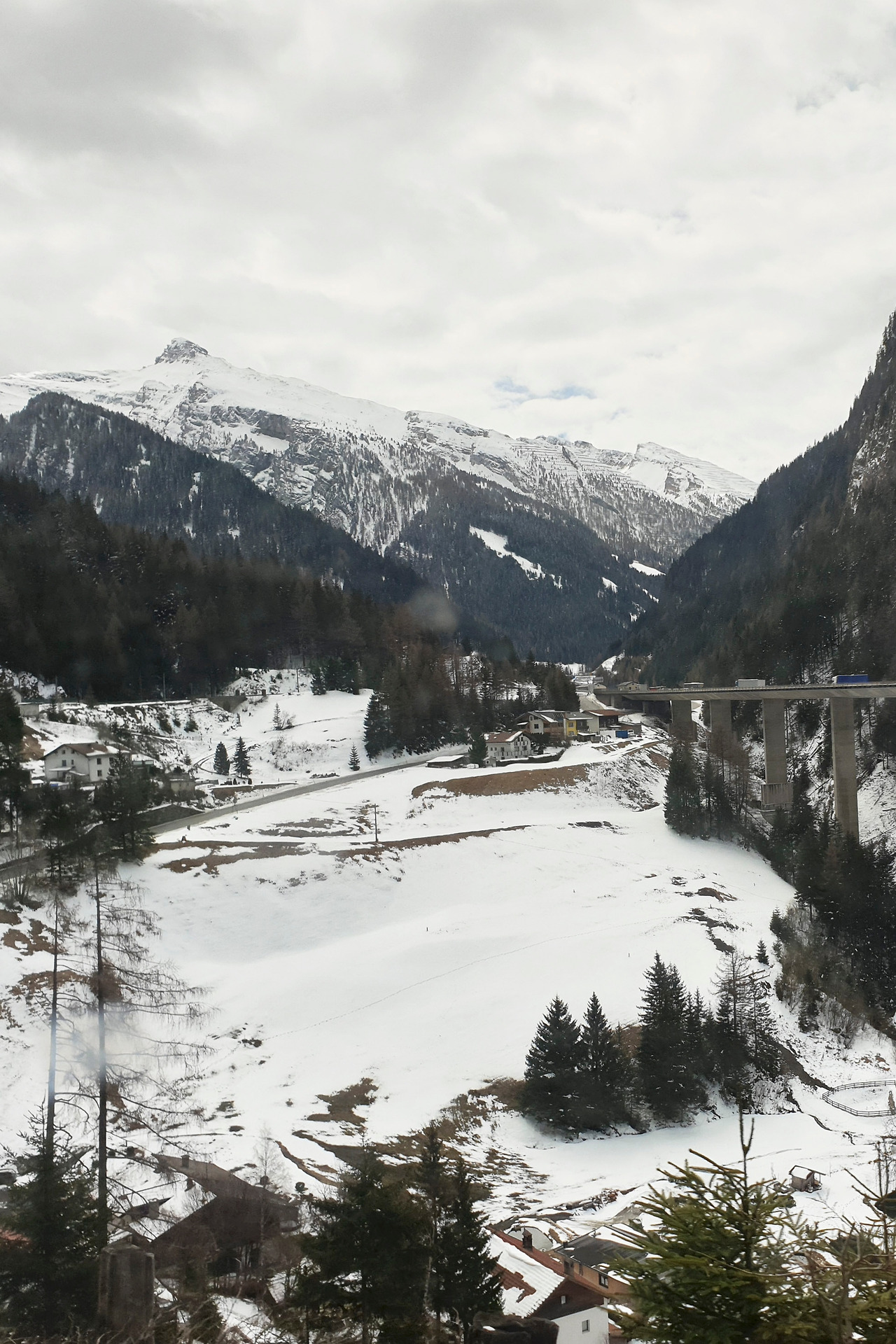 인스브루크를 지나자 계곡은 점점 좁아지고 산은 높아졌다. 열차가 움직임에 따라 계절이 빠르게 바뀌었다. 흐리다가도 햇살이 비치고, 눈 덮인 뾰족한 봉우리가 나왔다가 눈 녹은 둥그런 언덕이 나오길 반복했다. 핸드폰 카메라와 별도로 챙긴 디지털카메라로 번갈아 가며 찍느라 쉴 수가 없었다.