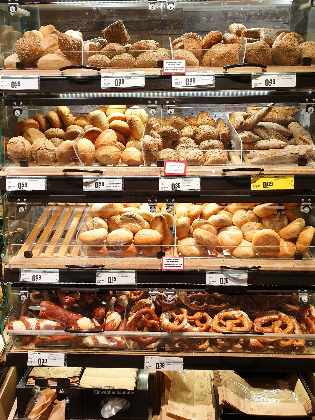 독일의 마트에선 뭐든 저렴하고 종류가 많은 것에 놀라곤 했는데 이날도 마찬가지였다. Rewe 마트의 베이커리 코너는 이래도 되는 걸까 싶을 정도로 빵값이 쌌다. 소시지와 과일도 마찬가지. 곧바로 출발 예정이기에 한가득 사지 못하는 게 아쉬웠다. 즉석식품 코너엔 Donburi Yakitori Hühnchen(닭꼬치 닭고기 덮밥)이라는 친숙한 중복 단어 조합이 보였다. 열차 이동시간만 환승 포함 7시간이 넘을 예정이었다. 빵과 과일, 요구르트, 초콜릿, 그리고 닭고기덮밥까지 결국 20유로 넘게 들었다.