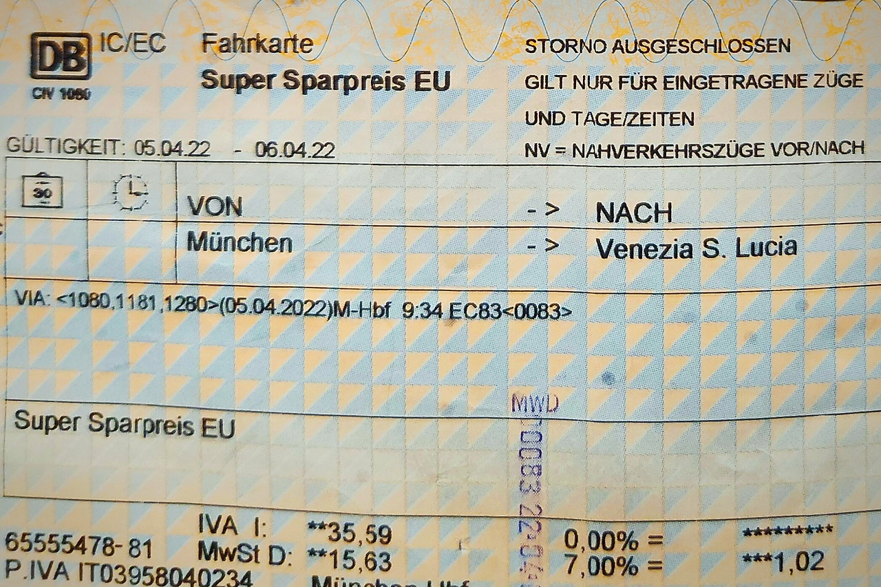 분명 출발지와 목적지가 적혀있는데 뭐가 문제지? 그 순간 오스트리아 직원의 말이 떠올랐다. 설마 그 직원이 말한 ‘베로나에서...’가 이 표를 제시하고 RE 표를 새로 발권하라는 뜻이었을까?