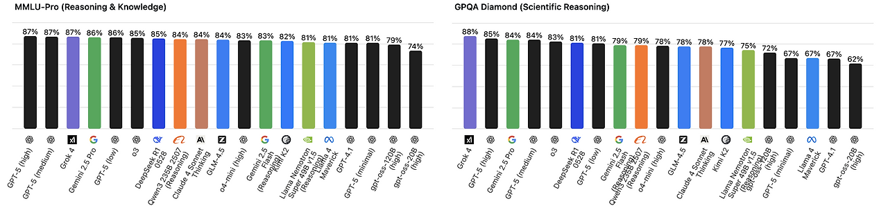OpenAI의 GPT-5가 나왔고, Anthropic의 Claude Opus 4.1이 나왔고, Google의 Gemini 2.5 Pro가 나왔습니다. 일론 머스크의 Grok 4도 등장했죠.