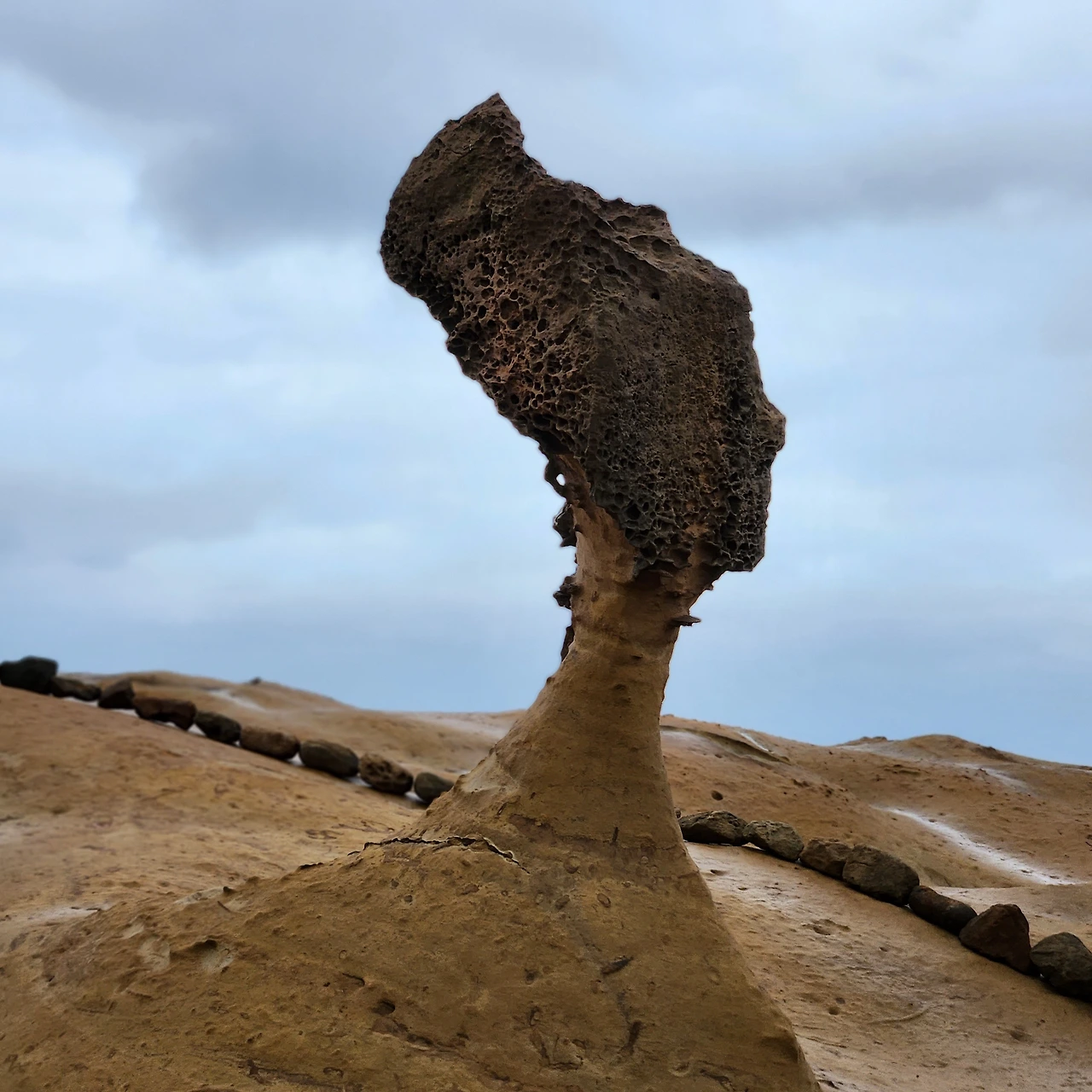 예류, 자연이 만든 지질 공원이 있는데 비, 바람의 풍화 작용으로 만들어낸 조각 같은 바위들을 만날 수 있습니다. 자연이 만들어낸 풍경, 시간이 지나면 비, 바람에. 깎여 사라져 가는 곳이라 합니다.대표적으로 사라져 가는 바위가 아래 바위라고 하네요.