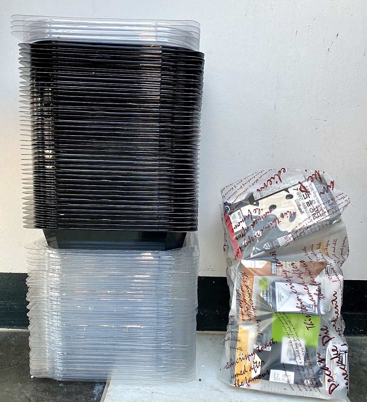 샐러드 도시락만 열 달 먹다가 밑간이 센 반찬이 들어가니 속이 뒤집어졌다(반찬 문제가 아니라 내 위장 문제). 짜고 맵게 느껴져서 안 그래도 적은 밥 양이 턱없이 모자랐다. 어쩔 수 없이 반찬을 많이 남겼다. 샐러드 도시락을 먹을 땐 도시락 바닥까지 싹싹 핥아먹고 물로 씻어 도시락 용기를 재활용 쓰레기로 버렸다. 싹싹 다 먹을 수 없는 새 도시락 메뉴는 음식물 쓰레기(매운 반찬, 닭 뼈 등)가 많이 나와서 내가 어떻게 처리할 방법이 없었다. 게다가 비닐봉지, 도시락 용기를 묶는 고무줄, 국을 담은 용기가 넘어지지 않게 밑바닥에 붙인 스카치테이프, 일회용 나무젓가락과 플라스틱 수저 등 도시락 구성물은 모두가 일회용품 덩어리였다. 집에서 수저와 포크를 가져와 쓰고 '일회용 나무젓가락과 플라스틱 수저는 넣지 말아 주세요'라고 부탁을 드렸지만, 나 역시 일회용 쓰레기 배출에 일조하는 중이라 마음이 편치 않았다. 아! 그리고 하나 더. 요즘 사람들 고기 정말 좋아하나 보다. 나도 고기를 맛있게 먹기는 하지만 굳이 찾아 먹는 편은 아니다. 나는 고기보다 나물이나 두부가 더 좋은 종류의 잡식동물이다. 그런데 도시락 반찬엔 매 끼니마다 세 가지 고기(돼지, 닭, 소)가 꼭 함께 나온다. 소비자의 요구가 있으니 도시락 메뉴를 이렇게 구성하는 것이겠지만, 과하다 싶은 인류의 육식 욕망과 공장식 축산의 폐해가 불러일으킨 환경 문제의 나비 효과가 오늘 코로나 사태의 주범이란 데에 생각이 미치면 고기반찬이 자꾸 목에 걸린다.