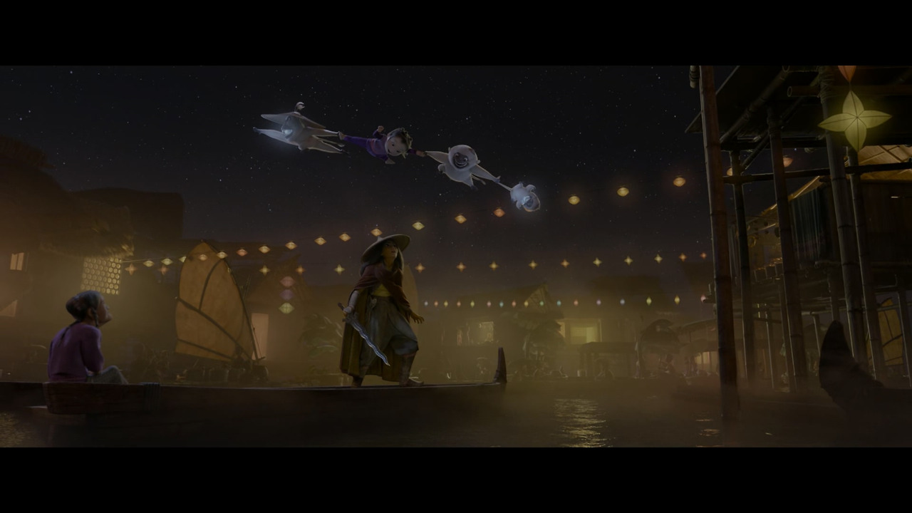 4. 돈 홀 감독의 연출은 여성 캐릭터를 전면에 내세운 전작 <모아나>의 어정쩡한 실패(중심 캐릭터 '마우이'의 극 중 존재감과 역할 포지션이 꽝이어서 전체 균형을 말아 먹음)를 딛고 진일보한 느낌. 같은 디즈니의 실사 영화 여전사 '뮬란'보다 훨씬 입체적이고 독립적인 캐릭터 구축에 성공한 듯. 친구이자 숙적인 여전사 '나마리'(송곳니 부족의 족장 딸)가 반대편에서 갈등 구조의 균형을 맞추는 역할을 훌륭히 수행했고 무엇보다 그동안 뻔했던 남녀 짝짓기 클리셰에서 벗어났다는 게 <라야와 마지막 드래곤>의 가장 멋진 성취가 아닐까 싶다. 라야가 도움을 청하러 뛰어든 배에서 선장을 찾을 때 역시 '디즈니는 제 버릇 개 못 주는군' 하며 한심해 했는데 요리하던 소년 '분'이 그 배의 선장이었다는 게 유쾌한 반전.