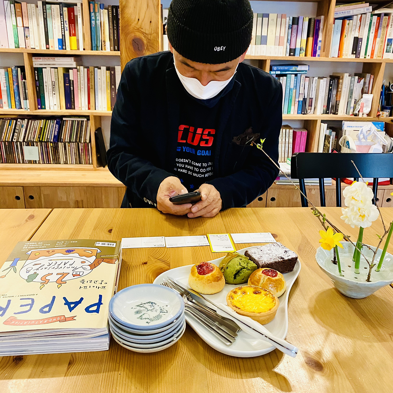 <자산어보>가 흑백 영화이니 인터뷰 드레스 코드랍시고 옷장을 몽땅 뒤져 흑백 의상으로 차려입었다. 흰 재킷에 검은 티셔츠와 바지, 그리고 검은색 양말과 운동화에 까만 페도라 모자까지. 이런 광대짓을 보고 놀라 '옷이 이게 뭐야, 촌스럽게...' 라며 놀려댔지만, 질문지 작성과 선정부터 인터뷰 및 인터뷰 원고 작성과 퇴고까지 늘 함께해 주고 지도 편달을 아끼지 않은 정유희 편집장님과 신영배 팀장님께 고마움을 전하고 싶다. 아! 예가체프 커피 향과 맛난 다과로 인터뷰 정취를 한껏 돋아주신 <소행성>의 편성준 & 윤혜자 님과, 동영상 촬영 및 인터뷰 진행을 도와준 박주호 기자 & 정윤 씨에게도 감사를! 이준익 감독님과의 인터뷰 기사 전문은 <paper> 봄호에 있어요!