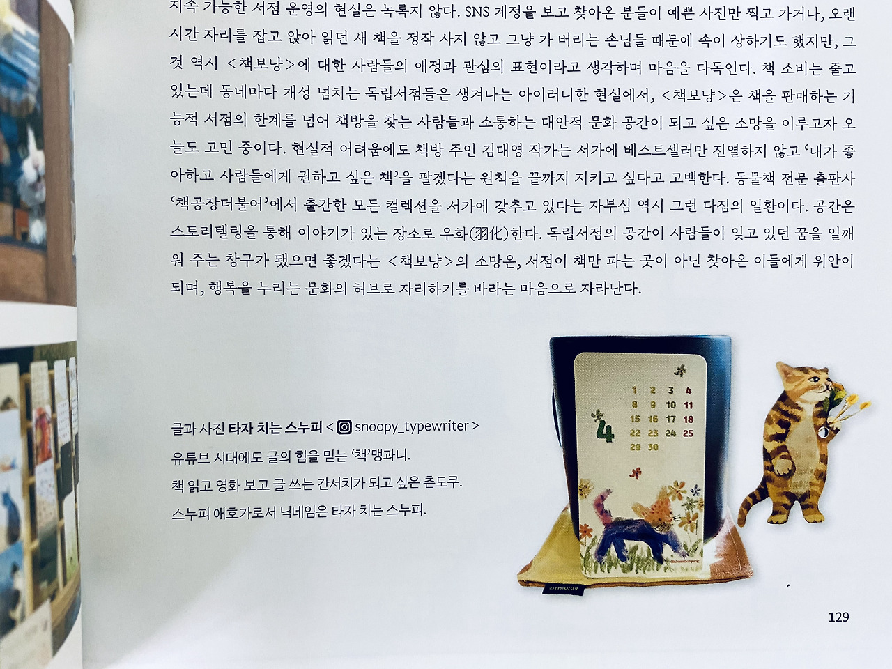 PAPER 2020년 가을호 특집 테마는 '책의 집'이었다. 뇌과학자 정재승의 소우주 같은 서재를 비롯해 방방곡곡 18개의 책의 집(독립서점)을 소개하는 특집이었다. '요즘 누가 오프라인 서점에 관심이나 있을까?' 싶었는데, 독자들 반응이 예상외로(?) 좋았다. 개성 넘치는 독립서점(혹은 동네책방)을 소개하는 고정 꼭지를 만들자는 PAPER 편집부의 작당 모의(?)가 있었다. 운 좋게(아닌가? ㅋ) 내가 이 새로운 코너의 담당자가 되었다.
