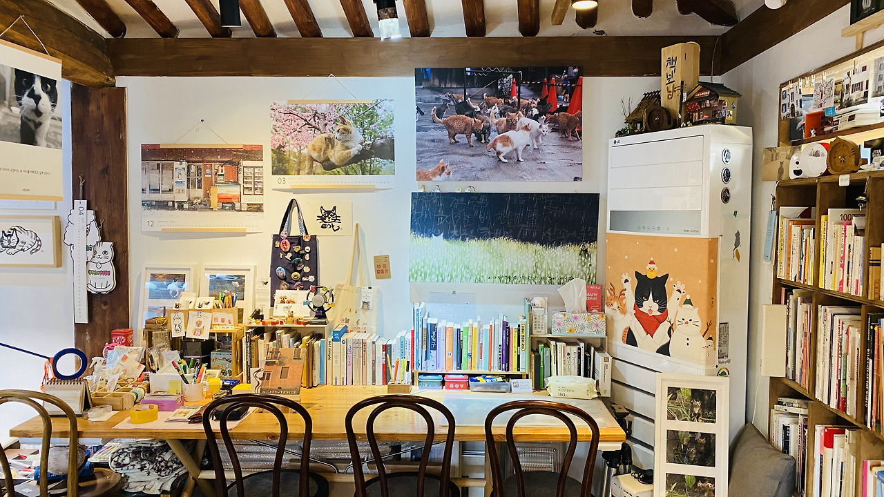 꼭지 이름은 '동네책방 탐방'. 소박한 라임이 예뻐서 마음에 들었다. 연재를 시작하게 됐을 때, 머릿속에서 팝콘이 터지듯 제일 먼저 떠오른 서점이 있었다. '이런 곳에 서점이 있을까?' 싶은 성북동 둔덕에 자리한 고양이 서점 <책보냥>. 초콜릿색 나무 대문을 열면 존 버닝햄의 그림책 <비밀 파티> 속에서 사람들 몰래 파티를 즐기던 고양이들이 튀어나올 것만 같다. <책보냥>은 고양이 ‘하동’이와 ‘하로’의 집이다. 인간 집사 김대영 작가가 더부살이(?)로 얹혀살고 있다. 나라별 특징을 고양이 캐릭터로 묘사한 백영욱 작가의 '고양이 세계지도', 한옥에서 온갖 작태를 벌이며 노는 고양이 세밀화 '묘락헌(猫樂軒)', <책보냥>만의 시그니처 아이템들(책보자기, 고양이 그림이 그려진 명함, 공드린 티백의 고양이 북마크, 장서인 등), 책방 주인의 추천 도서 목록 등을 코를 빠뜨리고 구경하느라 취재도 잊었다. 서점 구석구석 어디를 봐도 그림엽서처럼 예뻤지만, 예쁜 게 다가 아니었다. 서점 운영의 현실적 어려움 속에서도 서가에 베스트셀러만 진열하지 않고 '내가 좋아하는 책, 사람들에게 권하고 싶은 책'을 팔고 싶다는 원칙을 끝까지 지키고 싶다는 주인장의 결기가 단단했다. 동물책 전문 출판사 ‘책공장더불어’에서 출간한 모든 컬렉션을 서가에 갖추고 있다는 자부심 역시 강렬하게 각인되었다. 고양이 두 녀석과의 묘연(猫緣)처럼, 김대영 작가가 고양이 서점 <책보냥>의 문을 열게 된 것은 인간이 가늠할 수 없는 기묘한 인연 때문이리라. 책을 읽지 않는 코로나 시대, '마음 진료소'를 꿈꾸며 엉겁결에(?) 오픈한 새내기 독립서점이 현실의 이중고를 이겨내고 어떻게 살아남는지를 지켜보는 일은 블록버스터 영화를 보는 것만큼 흥미진진할 것 같다. 마음을 다한 환대를 따뜻한 차 한 잔에 담아 건네며 취재에 응해주신 <책보냥> 집사님께 고마운 마음을 전하고 싶다. <책보냥>을 '동네책방 탐방' 꼭지 1호 서점으로 소개하게 되어 즐거웠습니다. 살인적인 무더위와 녹록잖은 현실에 지치지 마시고, 하동 & 하로와 함께 건강하세요! 파이팅! (동네책방 탐방 1호 <책보냥> 편을 PAPER 여름호에서 만나 보세요. ^0^)