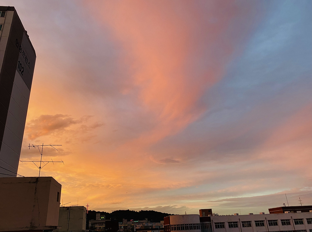 꿈결처럼 무지개가 떴다. 마누라와 함께 낮고 가난한 옥상에 올랐다. 서쪽 하늘은 누추한 이곳에도 처절한 아름다움을 던져주었다. 둘이 손을 꼭 잡고 꽃처럼 피었다 스러져가는 빛의 향연을 물끄러미 지켜보면서 대한민국 여자 배구팀의 선전과 이 세상 모든 생명의 안녕을 기원했다. 말이 사라진 곳에 눈 터지는 아름다움.
