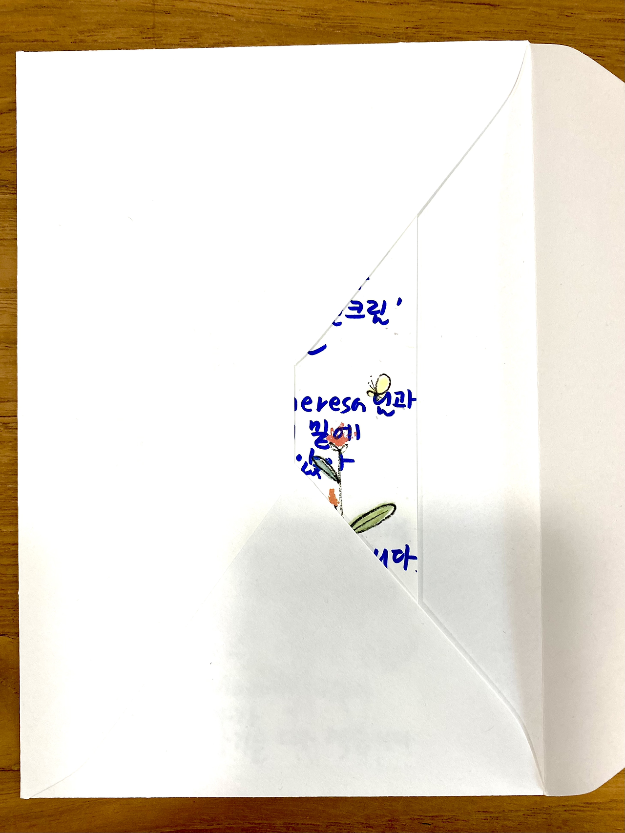 편지를 다 써서 편지봉투에 넣을 때였다. 물끄러미 보고 있던 문들 님이 말했다. "오른손잡이는 그렇게(봉투를 왼손에 편지를 오른손에 들고) 넣죠. 왼손잡이는 이렇게(봉투를 오른손에 편지를 왼손에 들고) 넣어요."