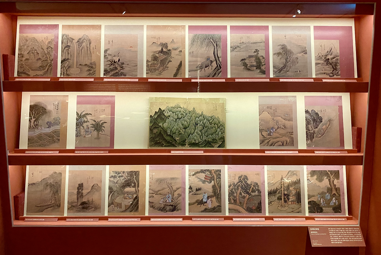고종이 문서나 법률 및 칙령 등에 사용한 국새 대군주보의 거북 손잡이 문양보다 덕은공주의 사자 모양 손잡이 인장(왕과 왕후의 어보는 거북이 모양 손잡이를, 후궁과 공주의 인장은 사자 모양 손잡이로 만들었다)이 더 멋져 보였다. 깔고 앉은 호랑이 가죽, 단상 의자 아래 깔린 돗자리의 문양, 도포 자락 밑에 손톱과 함께 드러난 손의 모양 등이 세밀하게 묘사된 초상화의 디테일은 조선시대를 풍미했던 문인화가 강세황이 당장이라도 튀어나올 것처럼 정묘했다. 독일 상트오틸리엔수도원에서 영구 대여 방식으로 돌아온 <겸재정선화첩> 속 작품들을 넋 놓고 바라보느라 시간 가는 줄 몰랐다. 특히 '바람이 매섭게 부는 날 길을 나선 나귀 탄 나그네의 모습'이라는 그림에 눈과 마음을 홀딱 빼앗겼다.