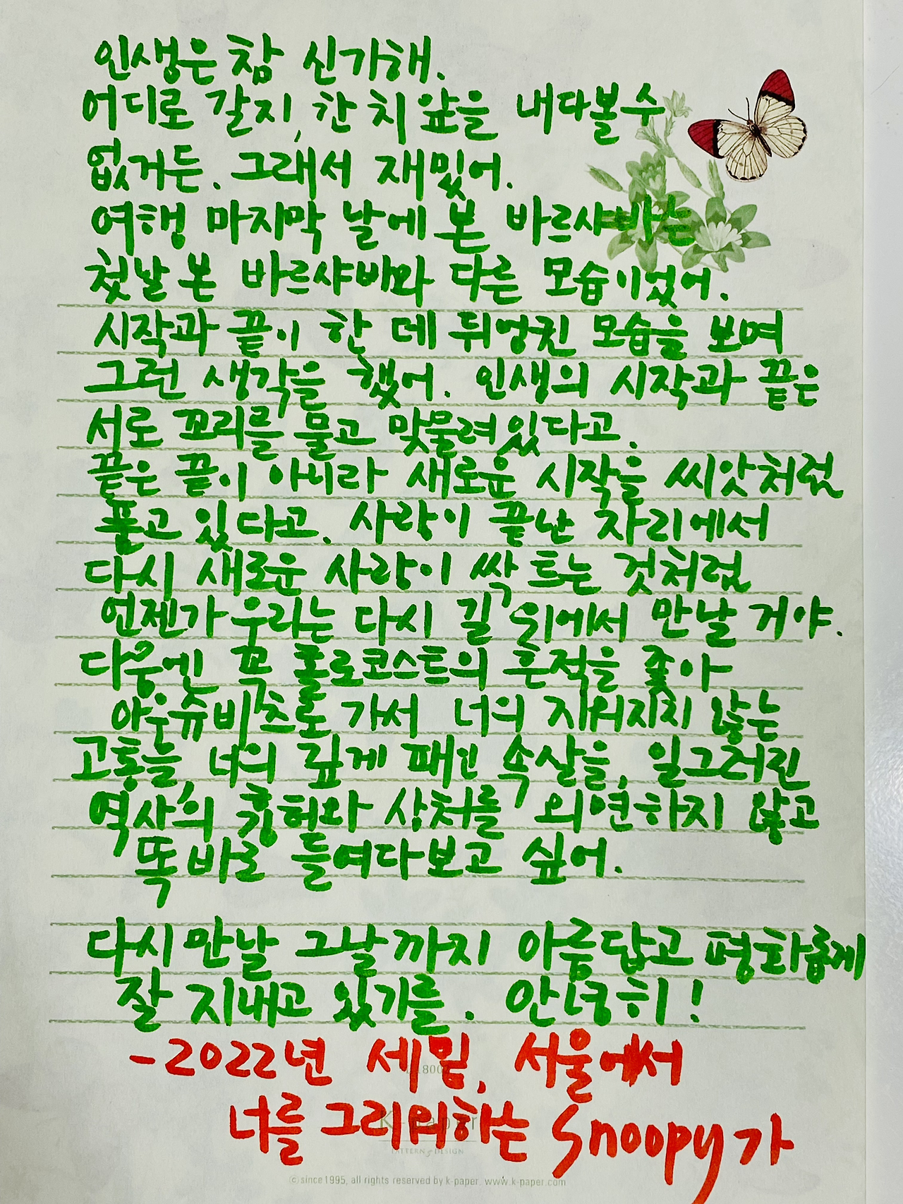 남은 편지는 아까워 이곳에 올린다.