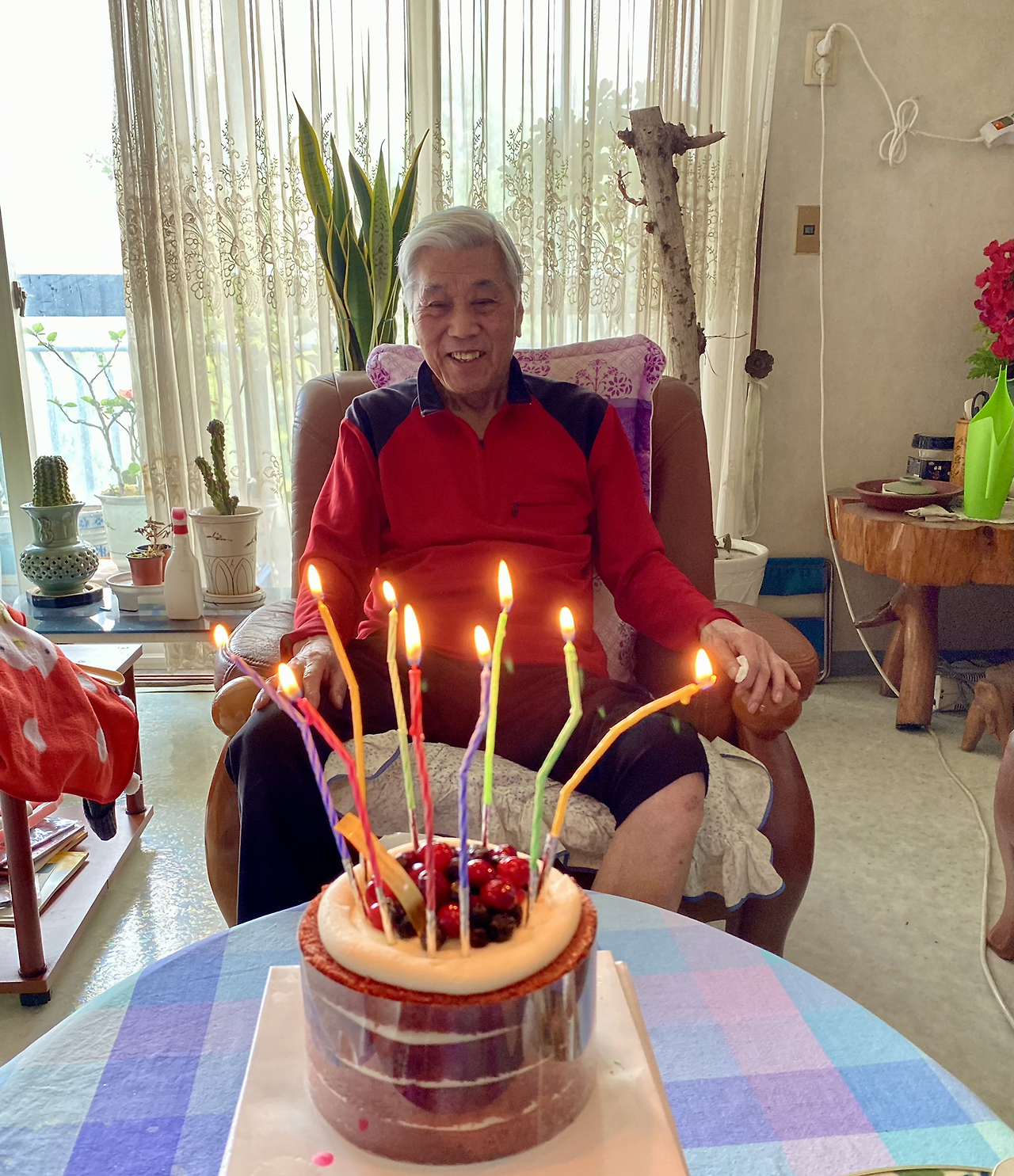 한 호흡으로 9개의 촛불을 "후~!" 불어 끄시는
