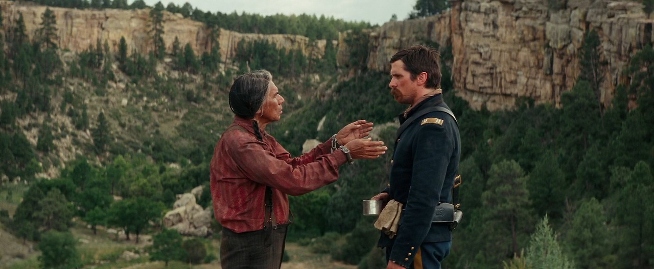 <몬태나>는 <도원경>, <더 홈즈맨>, <데드 맨> 등 미국 서부 개척사에 대한 참회를 다룬 수정주의 서부극과 한핏줄 영화다. 웨스턴 장르 영화라기보단 서부극의 외피를 쓴 종교적 묵시록에 가깝다. 영화의 메시지는 역설적이게도, 죄 없는 인디언을 도끼로 도륙한 죄로 호송되는 전직 군인 필 윌스(벤 포스터)의 대사를 통해 드러난다. "날 심판하는 건 옳지 않아요. 어느 누구도요. 난 정직하고 괜찮은 사람이에요. 난 당신과 함께 싸웠어요. 우리 모두는 죄가 있어요." 지난날 인디언 학살을 일삼았던 블레이크 대위의 회한에 찬 텅 빈 눈동자, 분견대 대원들의 혼란스러운 표정, 졸지에 가족을 잃고 새로운 운명을 만나게 된 로살리 퀘이드의 슬픈 얼굴은 <몬태나>를 종교극으로 만든다. 로살리 퀘이드의 대사처럼 인간은 '하느님의 험한 길에 결코 익숙해질 수 없'다. 삶과 생존에 대한 이야기를 하면서도 영화는 내내 삶의 도처에 있는 죽음을 말한다. 그리고 끊임없이 관객들에게 질문을 던진다. 조셉 블로커 대위는 좋은 사람인가?, 블로커 대위의 오랜 친구 토미 병장의 자기 희생을 통한 속죄(지난 시절 인디언 학살에 대한)는 어떤 의미인가? '좋은 사람'은 어떤 사람인가? 스콧 쿠퍼 감독은 이 질문들을 지난 시대의 장르인 서부극의 형식에 담아 '지금 미국'에 던진다. 그 질문들에는 <몬태나>가 전하는 포용과 구원의 주제가 '지금 미국'에 서부 개척시대의 성경만큼 중요한 담론이 되어야 한다는 바람이 담겨 있다.