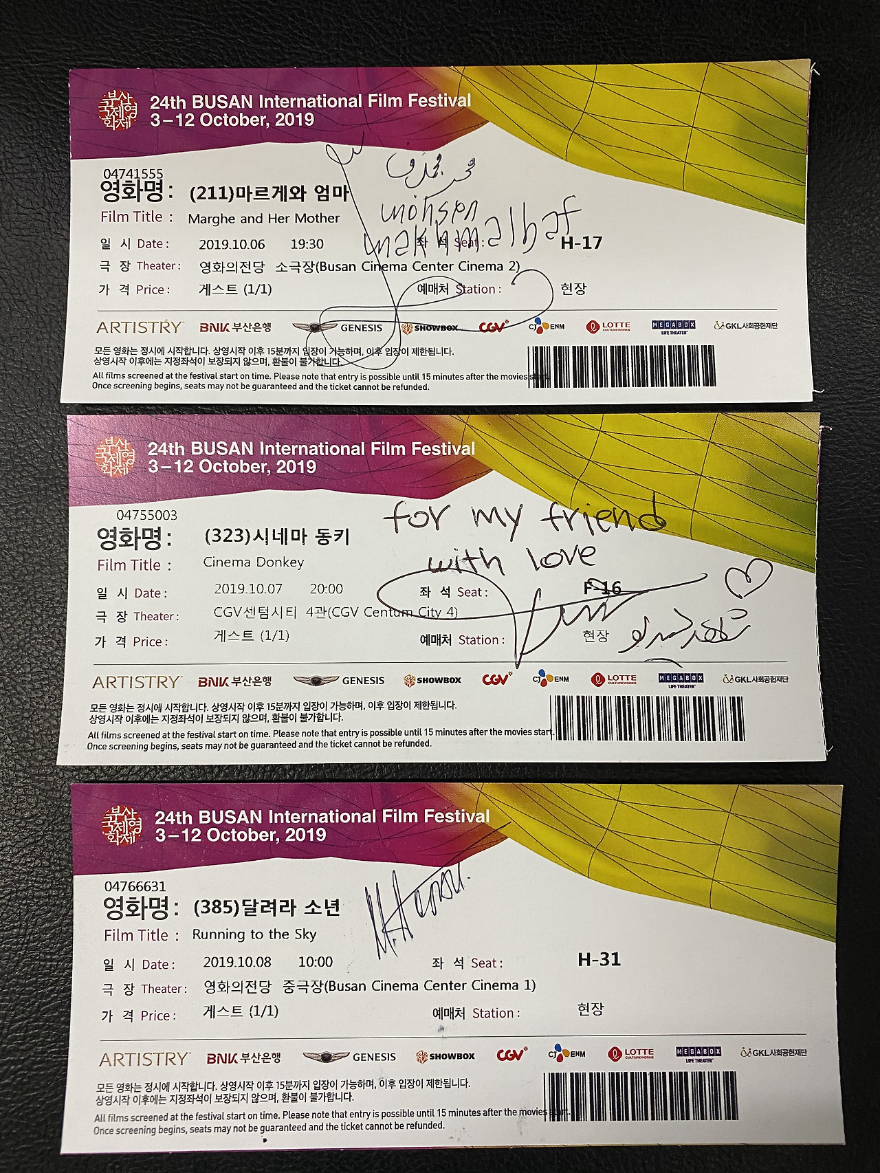 서울에 돌아와 밤마다 뜨거웠던 순간들을 하나하나 호명했다. <시네마 동키> 덕분에 이란에도 코미디 영화가 있다는 것을 알았다. 진심을 다해 한국 관객들과 소통하려는 사에드 아마드로우 감독의 GV는 감동적이었다. 친절한 밀란 압디칼리코프 감독의 영화 <달려라 소년>을 보고 키르기스스탄에도 우리와 똑같은 고민을 하며 살아가는 사람들이 있다는 것을 알게 되었다. 매표소가 있던 호텔 로비에서 모흐센 마흐말바프 감독을 만나기도 했다. <마르게와 엄마>를 잘 봤다고 인사를 건네고 사인을 받았다. 야외상영관에 나타난 티모시 살라메는 부산을 뒤집어 놓았다. 세대를 아우르는 물결이 일렁이고, 젊은 관객과 나이 든 관객이 같은 객석에 앉아 영화를 보면서 영화제의 과거와 현재가 뜨겁게 몸을 섞는 동안 스물네 번째 부산영화제의 밤이 저물어갔다. 송정 해수욕장 포장마차에 앉아 보았던 부산 밤바다의 미장센과 <비프힐> 3층 프레스 센터의 어둠 속에서 우연히 마주친 <은하보습반>의 야외 상영 장면들은 오래도록 잊지 못할 터였다. 무엇보다 영화제의 진짜 주인공은 영화를 사랑하는 당신들이고, 당신들의 뜨거운 열정이 있는 한 부산은 오래도록 늙지 않을 거라는 말을 꼭 해주고 싶었다. 아! 그리고 영화제 기간 동안 내 영화 친구가 돼주었던 정유희 편집장님께 한 스푼 더 진한 감사를 전한다.