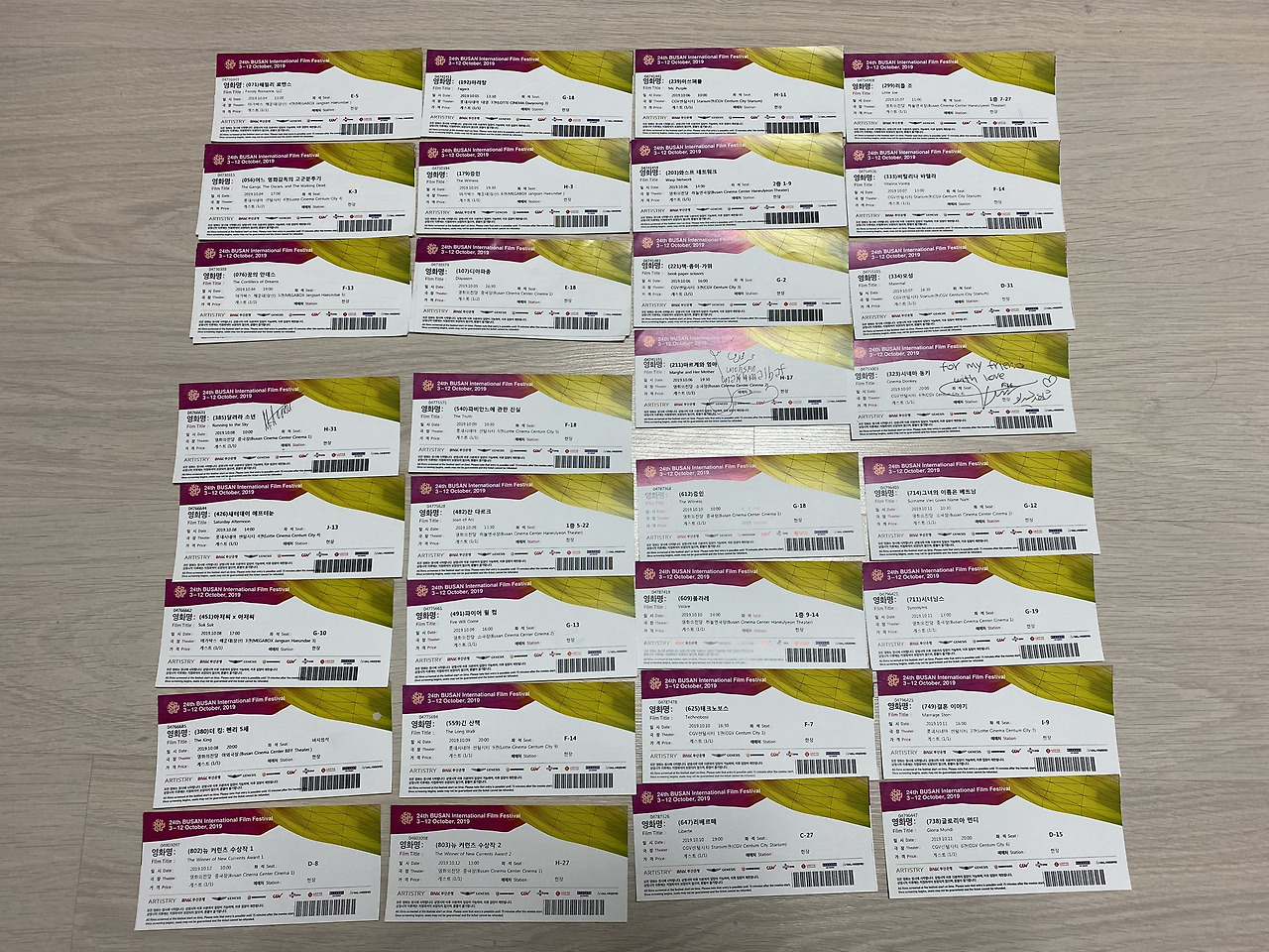 2019년 가을, 프레스 카드를 발급받았다. 'PAPER 객원기자'라는 명패가 황송해서 영~ 입에 붙지 않았다. 밥벌이에 치여 엄두도 못 내다가 오랜만에 영화제에 참석할 생각을 하니 심장이 터질 것 같았다. 누구나 안다. 여행은 막상 할 때보다 계획을 짤 때 더 행복하다는 것을. 2019년 상영 시간표를 출력해서 나만의 시간표를 만들었다. 보고 싶은 영화들이 동 시간대에 겹치는 경우가 많았다. '뭘 볼까?' 장고를 거듭했지만 부질없는 희망 고문이었다. 인터넷 예매 전쟁은 살벌했다. 예매 시작 1분 만에 1순위부터 8순위까지 찜해두었던 영화표가 깡그리 매진되었다. 좌석을 고르고 결제 카드 번호를 입력하는 사이 내가 열망하던 영화 티켓들이 몽땅 사라져버렸다. 계획은 어그러지고 나는 빈손이었지만, 이삭줍기하듯 남은 영화표를 긁어모았다. PAPER 편집부에 전설처럼 떠도는 오래된 격언이 하나 있다고 한다. "영화제의 진정한 재미는 불현듯 맞닥뜨리는 돌발 상황에 있는 거야." 밑져야 본전이니 편집장님의 그 말을 믿어 보는 수밖에. 전주영화제에서 <그을린 사랑>을 보고 충격을 받아서 예매해둔 저녁 표를 찢고 술을 마시며 영화를 곱씹었다는 일화나, 보고 싶었던 영화표를 못 구하고 아무 극장에나 들어가 봤다는 인도네시아 영화 <아주 특별한 여행>의 잔상이 오래도록 낙인처럼 찍혀 있다는 이야기에 귀가 솔깃했다. 세상에 '나쁜 영화'는 없다. 기호의 차이와 호불호가 있을 뿐. 모든 영화에는 명분과 목적과 하고 싶은 이야기와 나름의 형식이 있는 법이니까. 10월 3일 KTX를 타고 태풍의 눈 한가운데로 돌진했다. 태풍 '미탁'의 진로에 영화제의 운명이 달려 있었다. 부산역에 도착했다. 언제 그랬냐는 듯 짙은 먹구름을 비집고 해가 나더니 부산의 하늘이 파랗게 생글거린다. 거짓말처럼 태풍이 지나갔다. 어디선가 료타와 요시코 콤비가 나타날 것만 같다. 여기는 영화의 도시 부산 아닌가. 갑자기 키키 키린 할머니가 못내 그리워졌다. 그나저나, 금강산도 식후경. 부산에 왔으니 일단 밀면 한 그릇부터 먹고 시작!