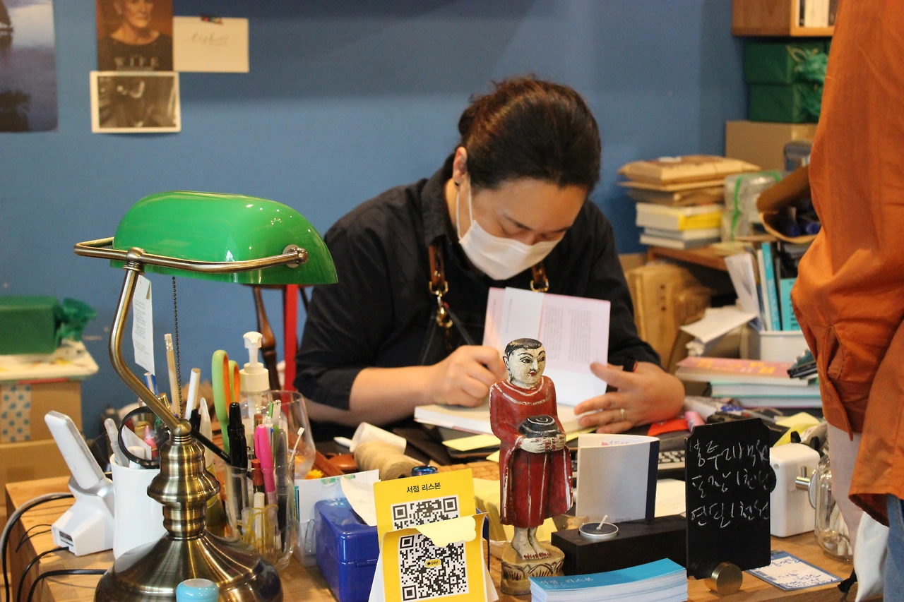 이 글은 <PAPER> 가을호 '책의 집을 소개합니다' 꼭지에 실린 취재 원고입니다. 바쁘신 중에도 <PAPER> 취재에 흔쾌히 응해주신 정현주 대표님께 감사의 마음을 전합니다. 오래전부터 <PAPER> 팬이었기에 취재 요청에 응했다는 그 말씀이 참 고마웠습니다. <서점, 리스본>을 닮은 파란색 만년필 손글씨도요. "책을 한 권 추천해 주세요!"라는 요청에 "결혼하셨어요?"라고 되물으시곤 "결혼했다면 무조건 이 책!"이라며 강화길 작가의 소설 <화이트 호스>를 권해주신 장면이 가장 인상적이었습니다. 조영주 작가님과 함께 해서 더 즐거웠던 서점 <리스본> 취재기. :0