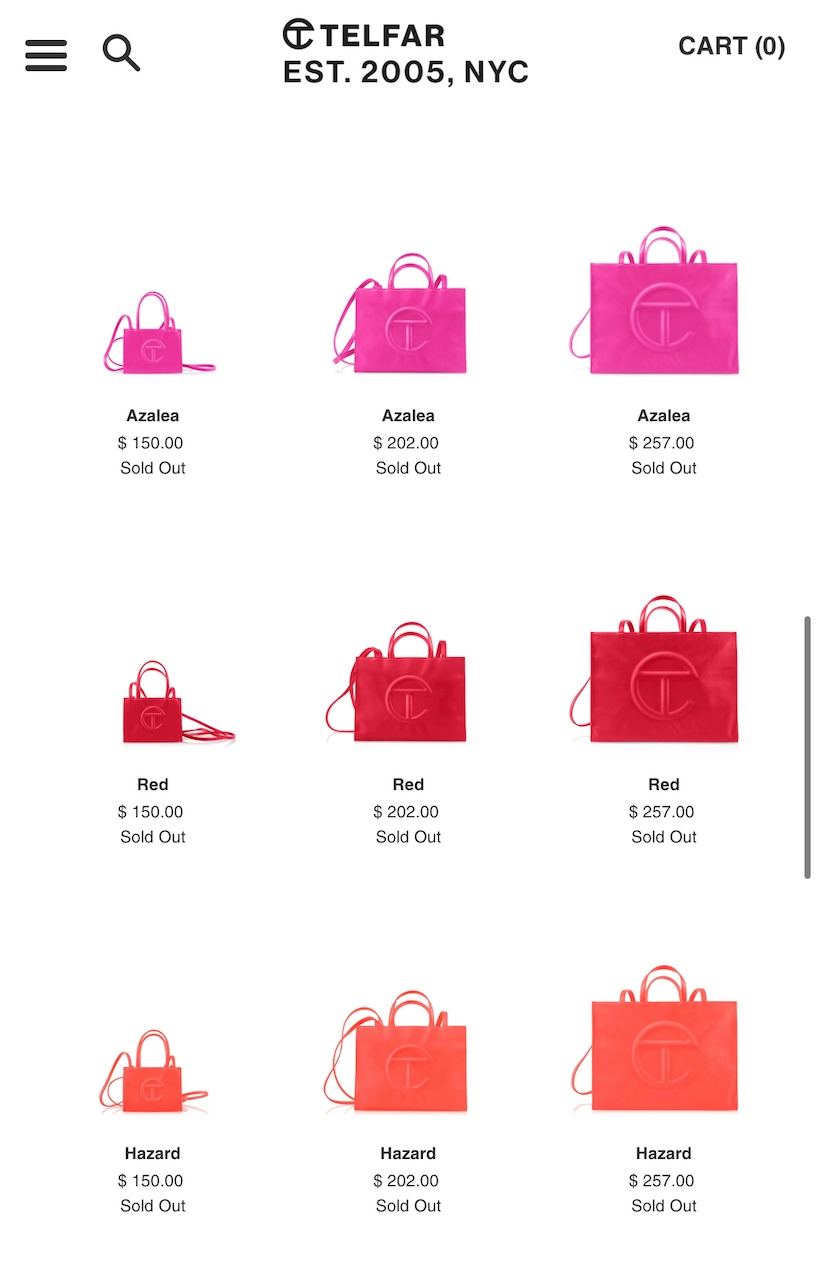 나이키의 공식 채널 SNKRS에서 랜덤으로 살 수 있는 덩크 로우에 프리미엄이 붙는 것처럼, 텔파백 또한 한정 판매 전략 때문에 리셀 가격이 높다. 한 달에 한두 번 정기적으로 판매할 때마다 이번엔 하얀색, 그다음엔 연두색, 이런 식으로 컬러 테마를 정하여 리미티드 에디션으로 판매한다. 이전에 본인이 원하는 특정 컬러가 이미 판매되었었다면, 언제 그 컬러가 다시 나올지 모른다는 게 희소성을 강조한다.
