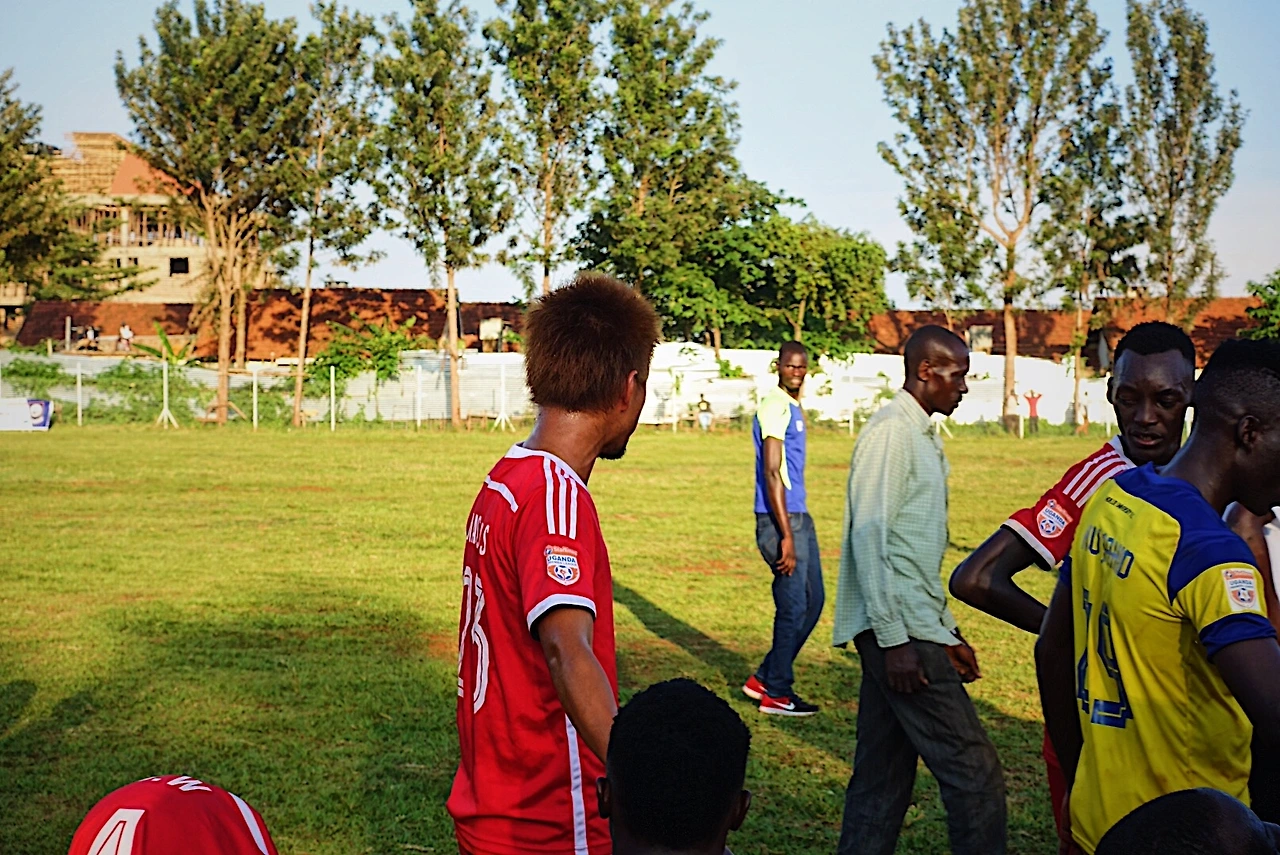 사실 자이카 단원인 ‘마사’가 뛰는 경기라고 해서 궁금했다. 우리는 아시아인들 사이에 흑인 용병에나 익숙하지, 흑인들 사이에서 뛰는 아시안 용병은 상상도 못 해 본 장면일 것이다. Jinja SS에 도착해 전화를 했더니 축구장 안으로 들어오라길래 펜스 출입문으로 들어갔다. 출입문을 관리하는(것으로 추정되는) 사람들이 내가 들어가려고 하자 자연스럽게 길을 열어주었다. 흑인들 사이에서 유일무이한 아시안의 활약을 보기 위해 경기장 안으로 들어갔다. 마사는 벤치에 앉아 있었고 후반전 초반 바로 교체 투입되었다.